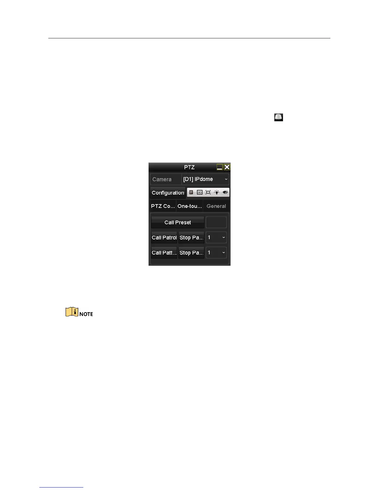 setting bar, or select the PTZ option in the right-click menu to show the PTZ control panel.