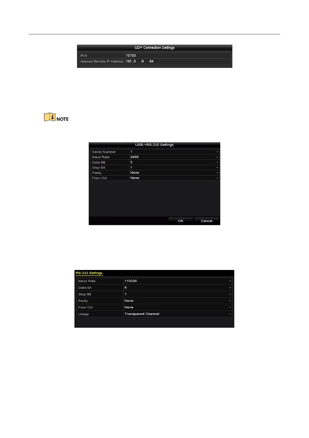 Connect the DVR and the POS machine via RS-232. The RS-232 settings can be configured