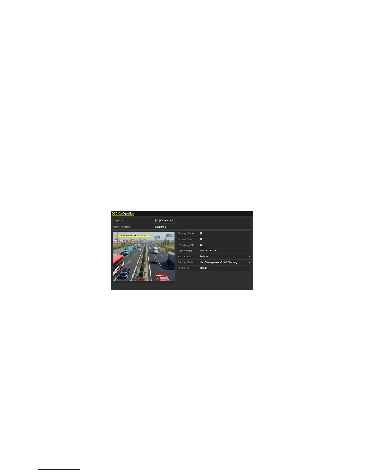 You can configure the OSD (On-Screen Display) settings for the camera, including date/time,