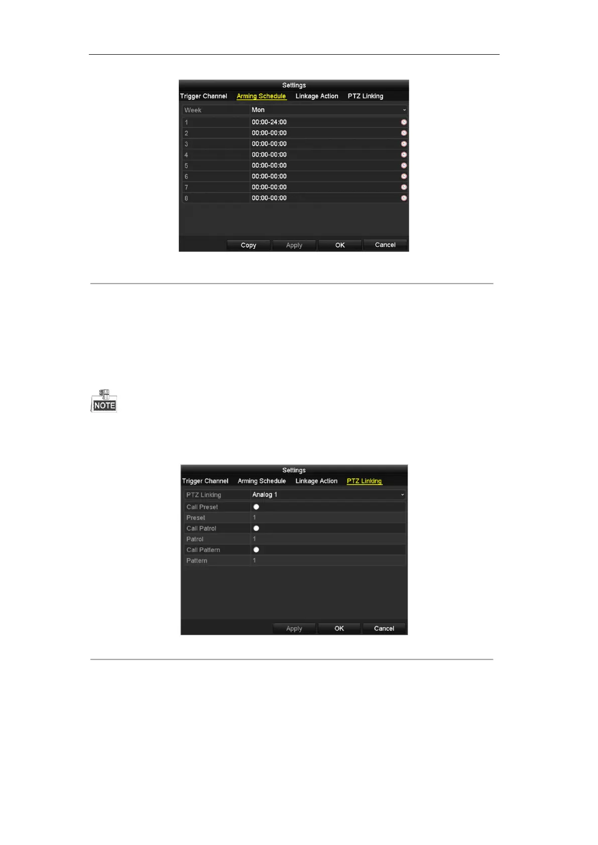 Repeat the above steps to set up arming schedule of other days of a week. You can also use Copy button