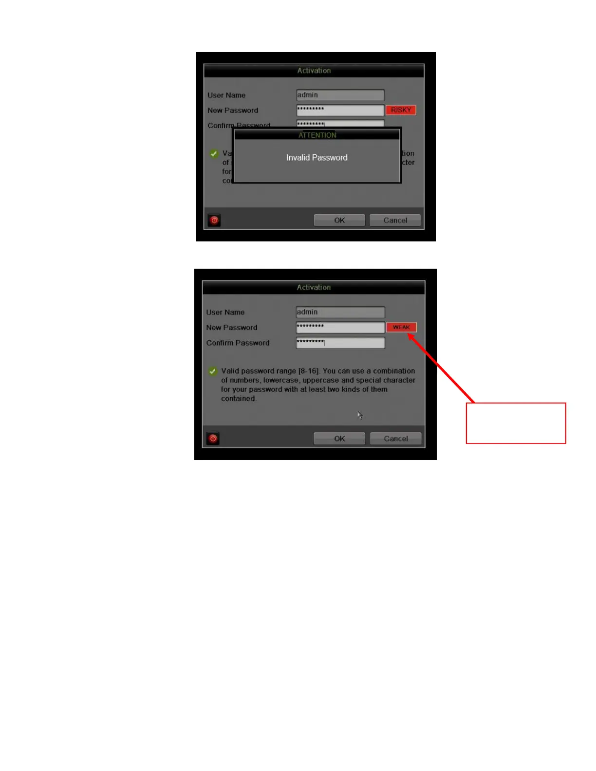 Figure 10, Invalid Password Message