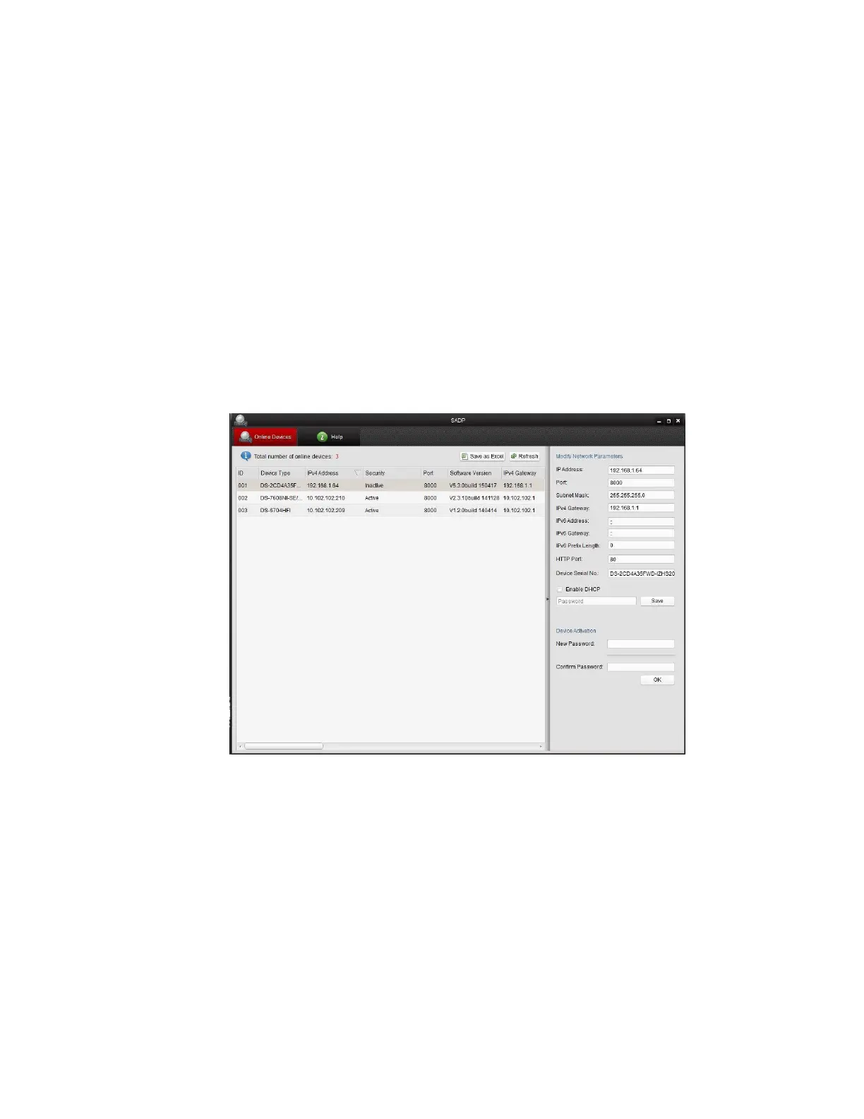 2. If the DVR/NVR is “Inactive,” highlight the DVR/NVR and enter a new password into the “New Password” field on the bottom right