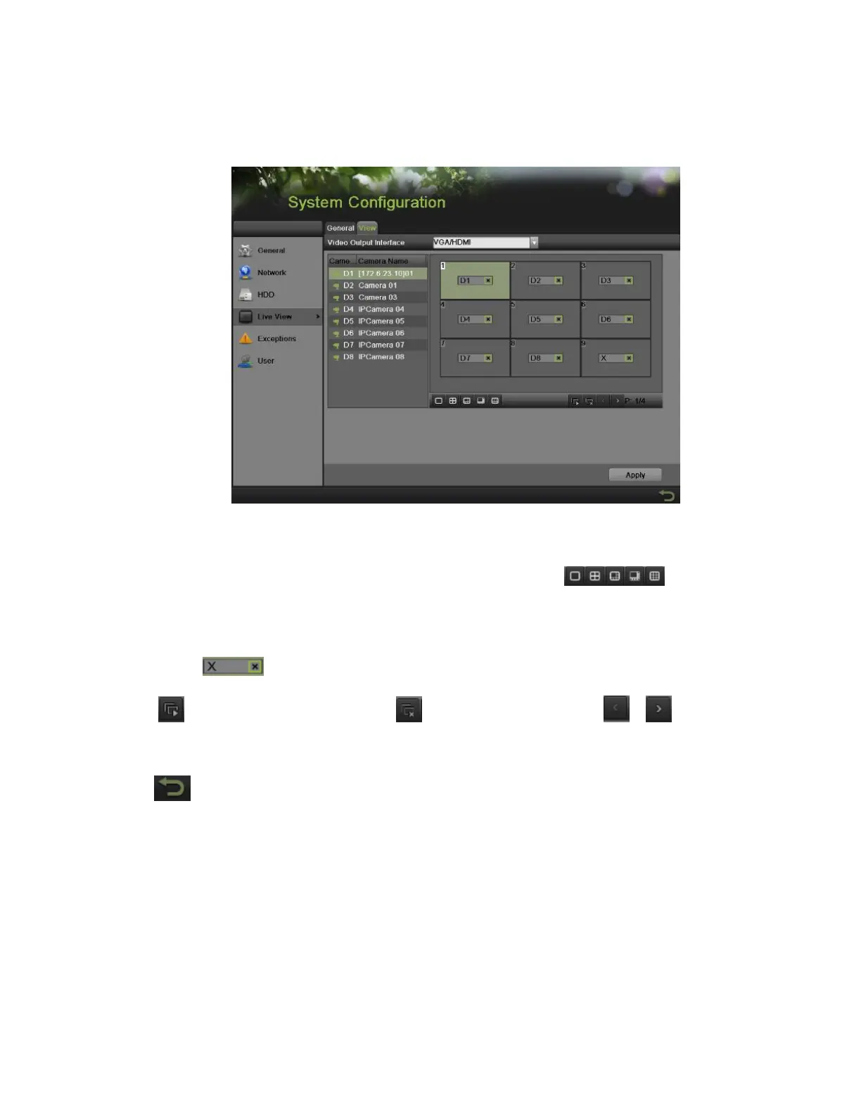 4. Click to start live view of all channels and click to stop live view all channels. Click or to go to the previous or