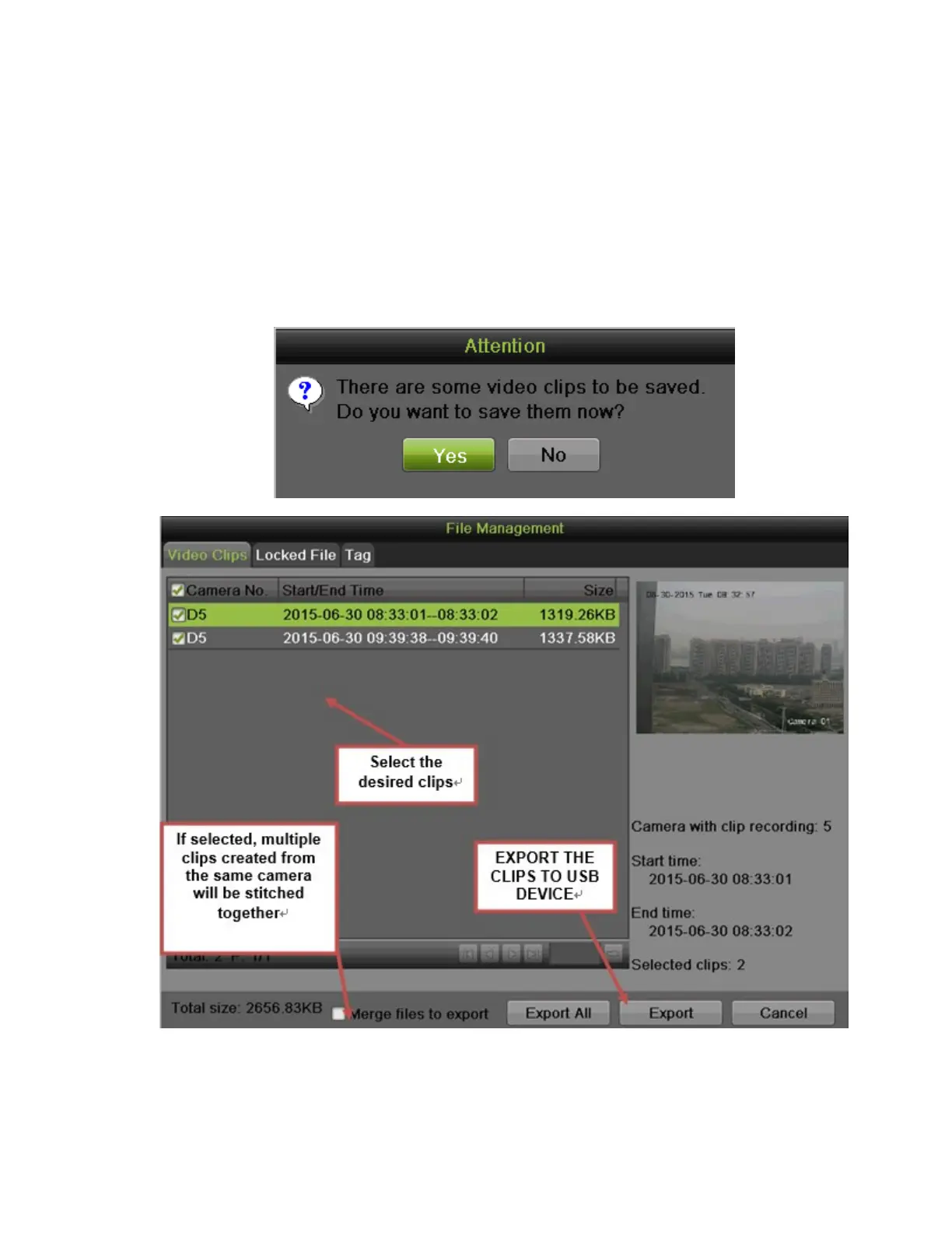10. Click YES to save clipping. After pressing YES, a new window pops up containing all saved clips.