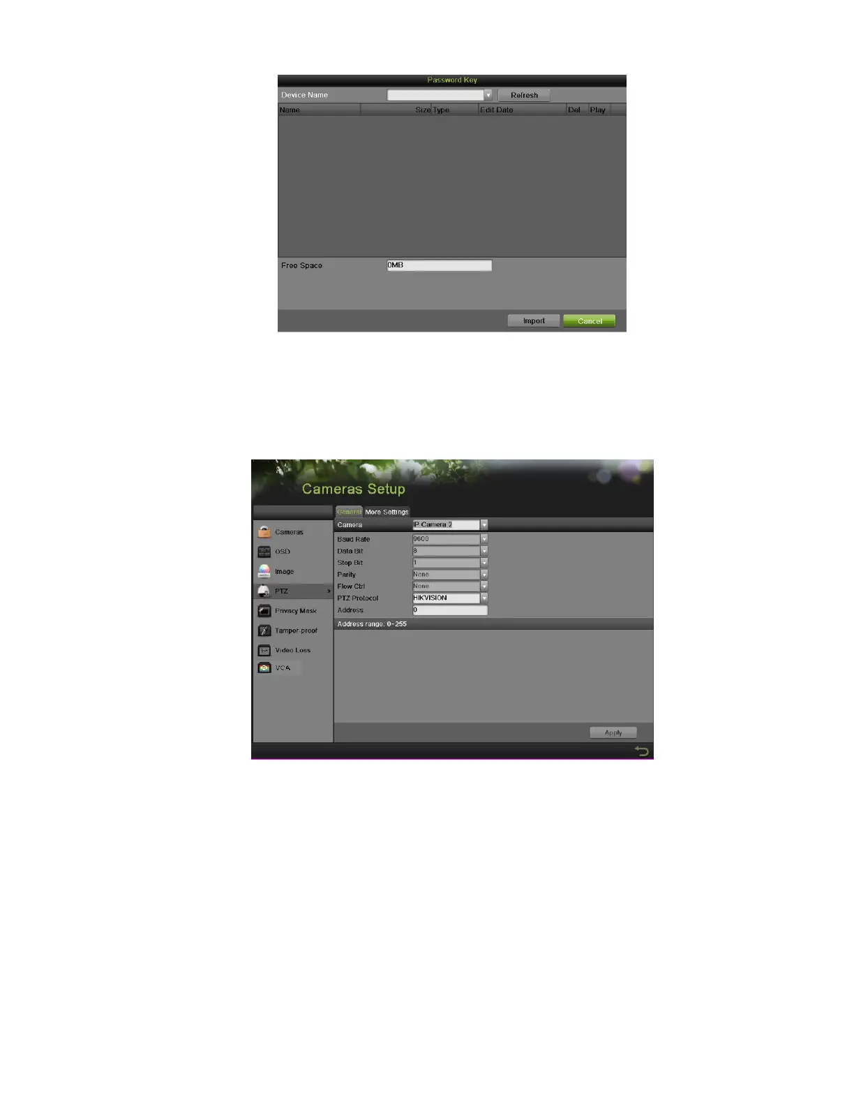 the Hikvision protocol, you should select Hikvision in the PTZ Protocol field.