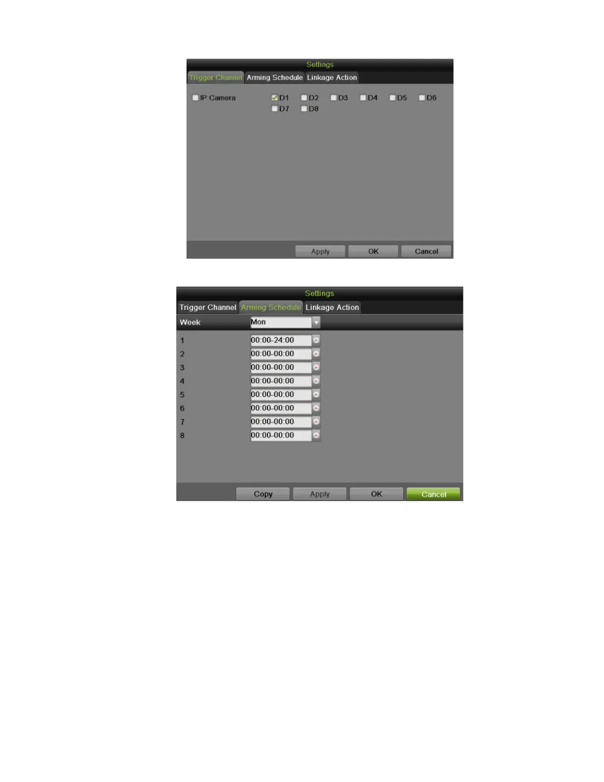 Figure 97, Arming Schedule Settings Menu