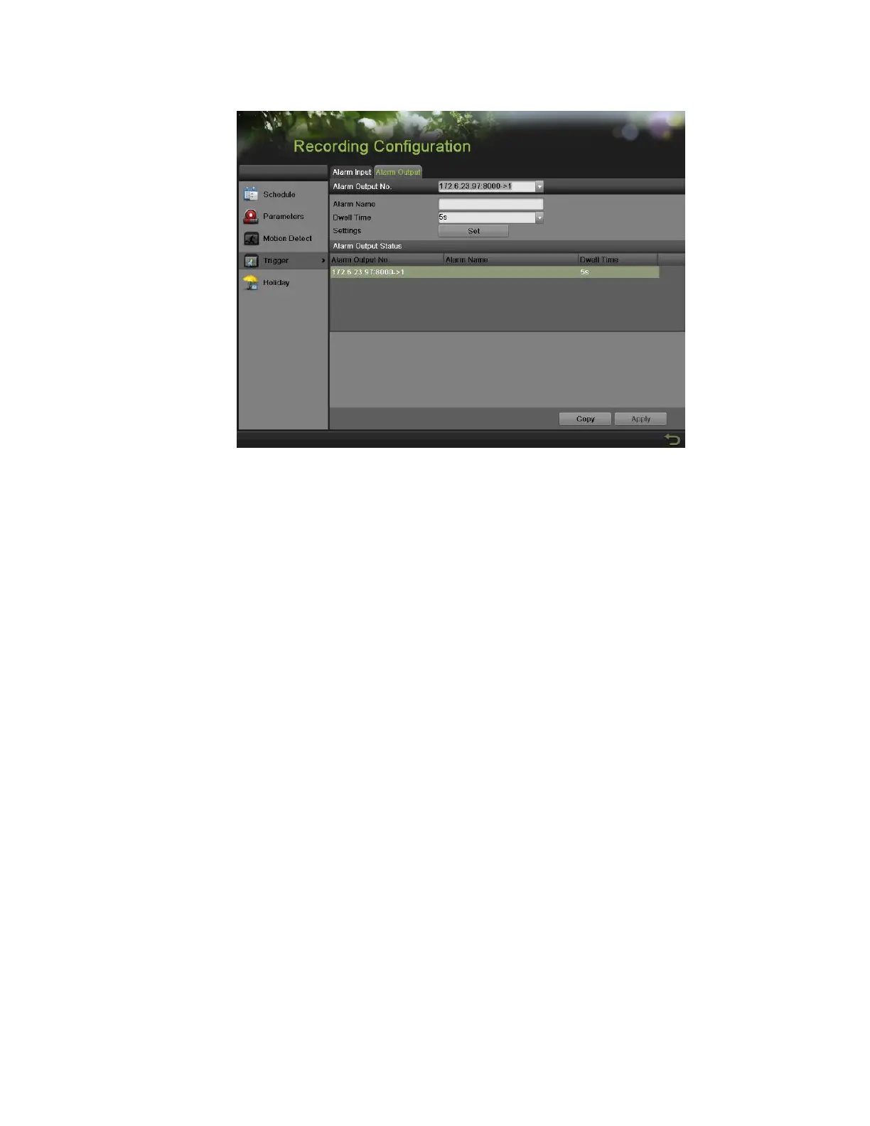 schedule can also be applied to other days, click Copy. Click Apply to save the settings and return to the Alarm Output interface.