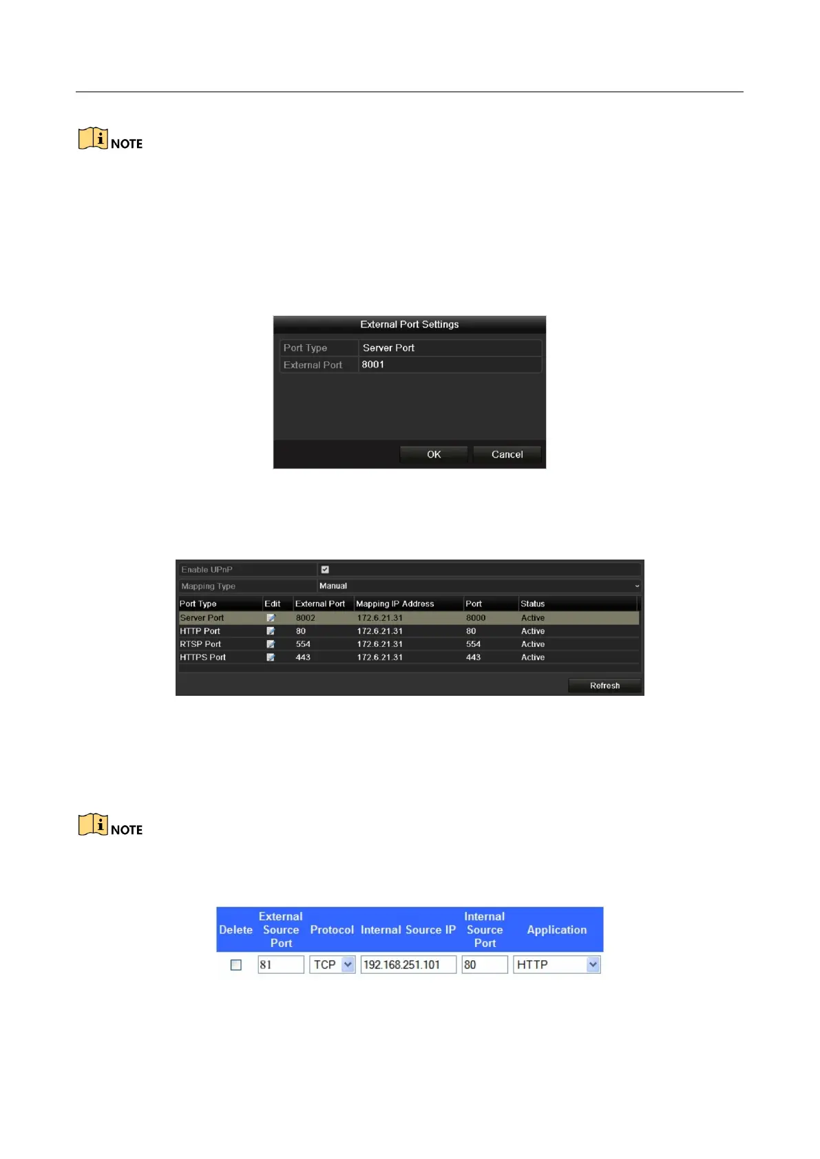 Each item should be corresponding with the device port, including server port, http port, RTSP port