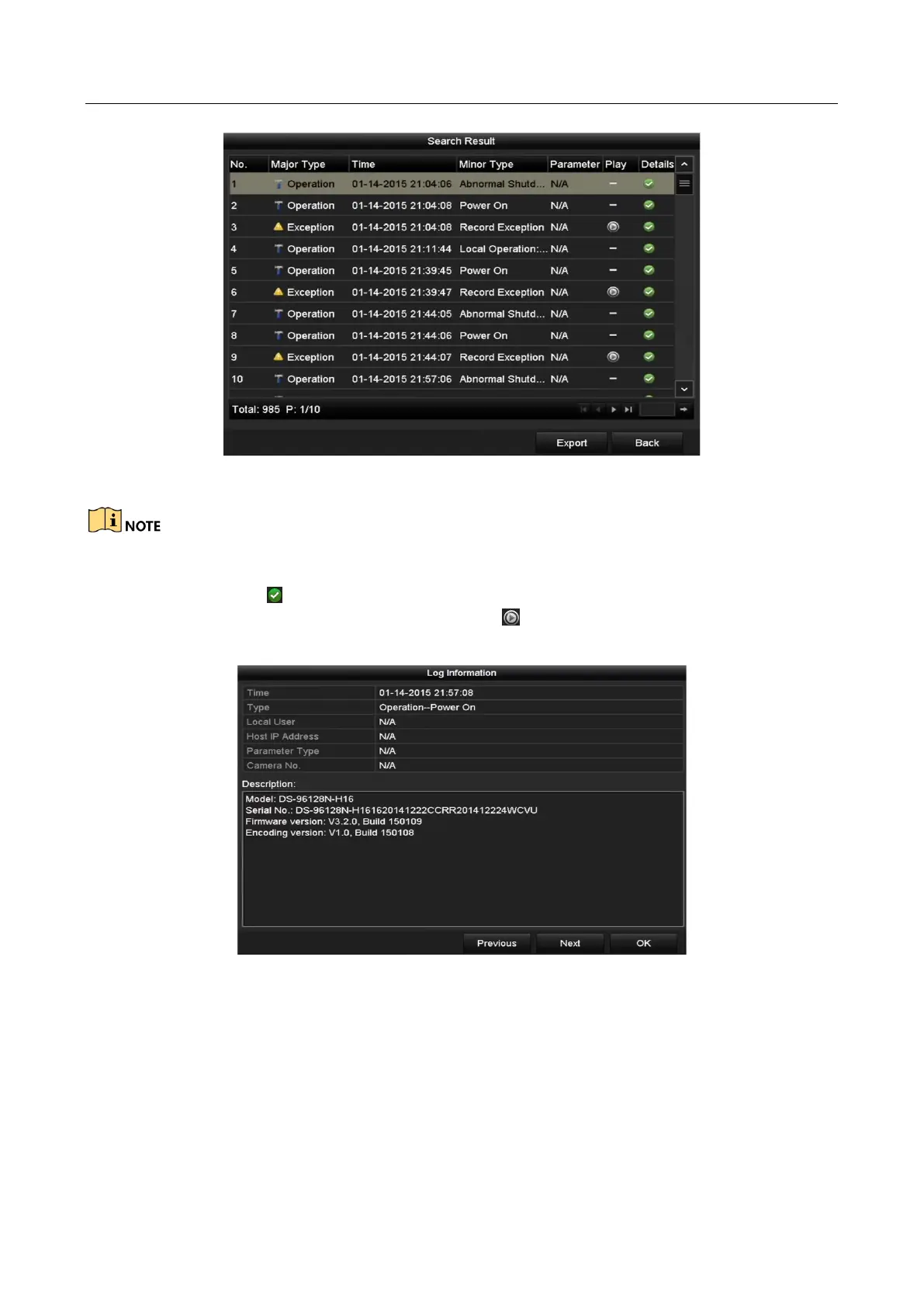 Step 6 If you want to export the log files, click the Export button to enter the Export menu, as