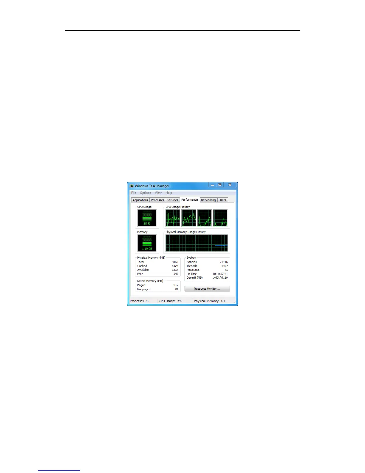 Select the “Performance” tab; check the status of the CPU and Memory.