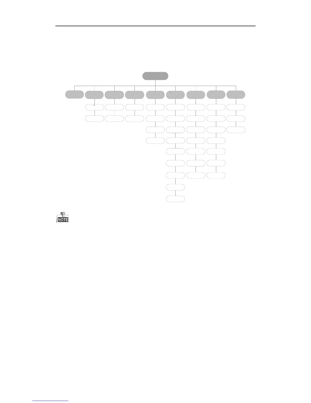 The menu structure of DS-8600NI-E8 and DS-7700NI-E4 series NVR.