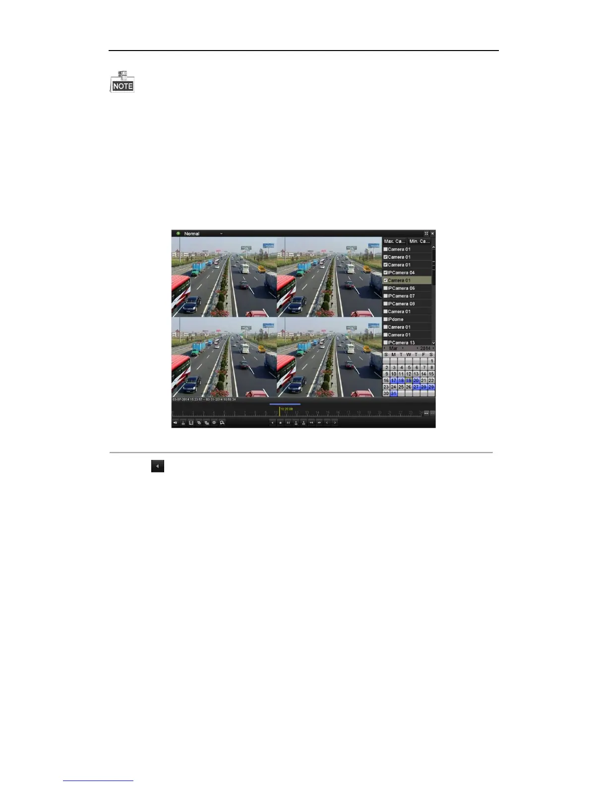 You can play back record files of multi-channel reversely. Up to 16-ch (with 1280*720 resolution) simultaneous