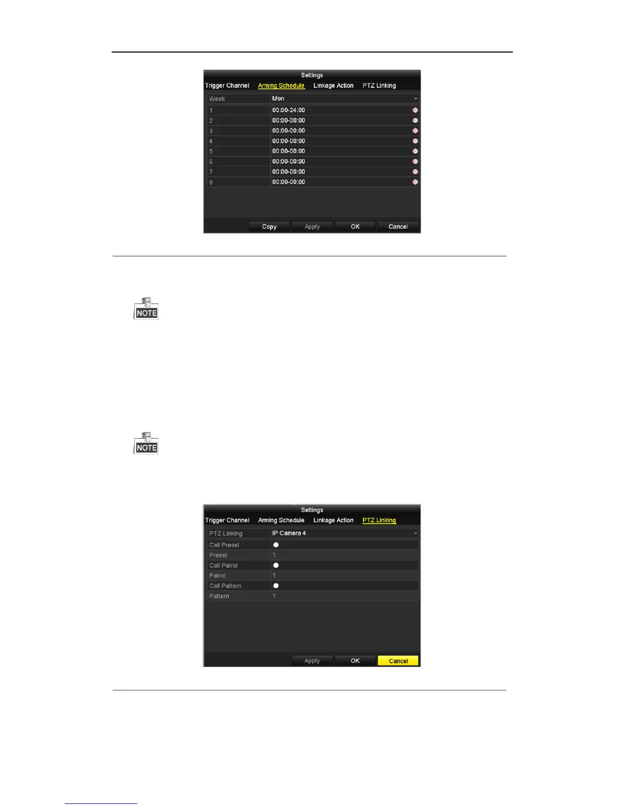 Repeat the above steps to set up arming schedule of other days of a week. You can also use Copy button to