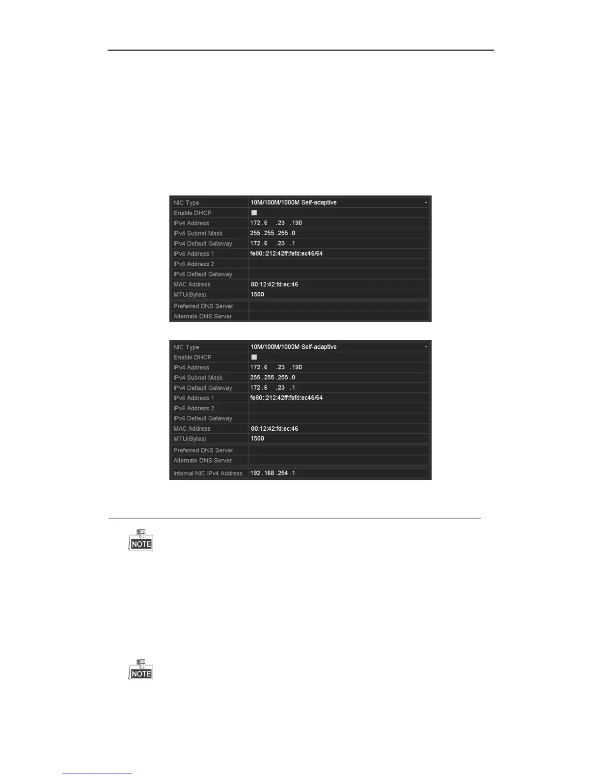 internal NIC IPv4 address should be configured for the cameras connecting to the PoE or built-in