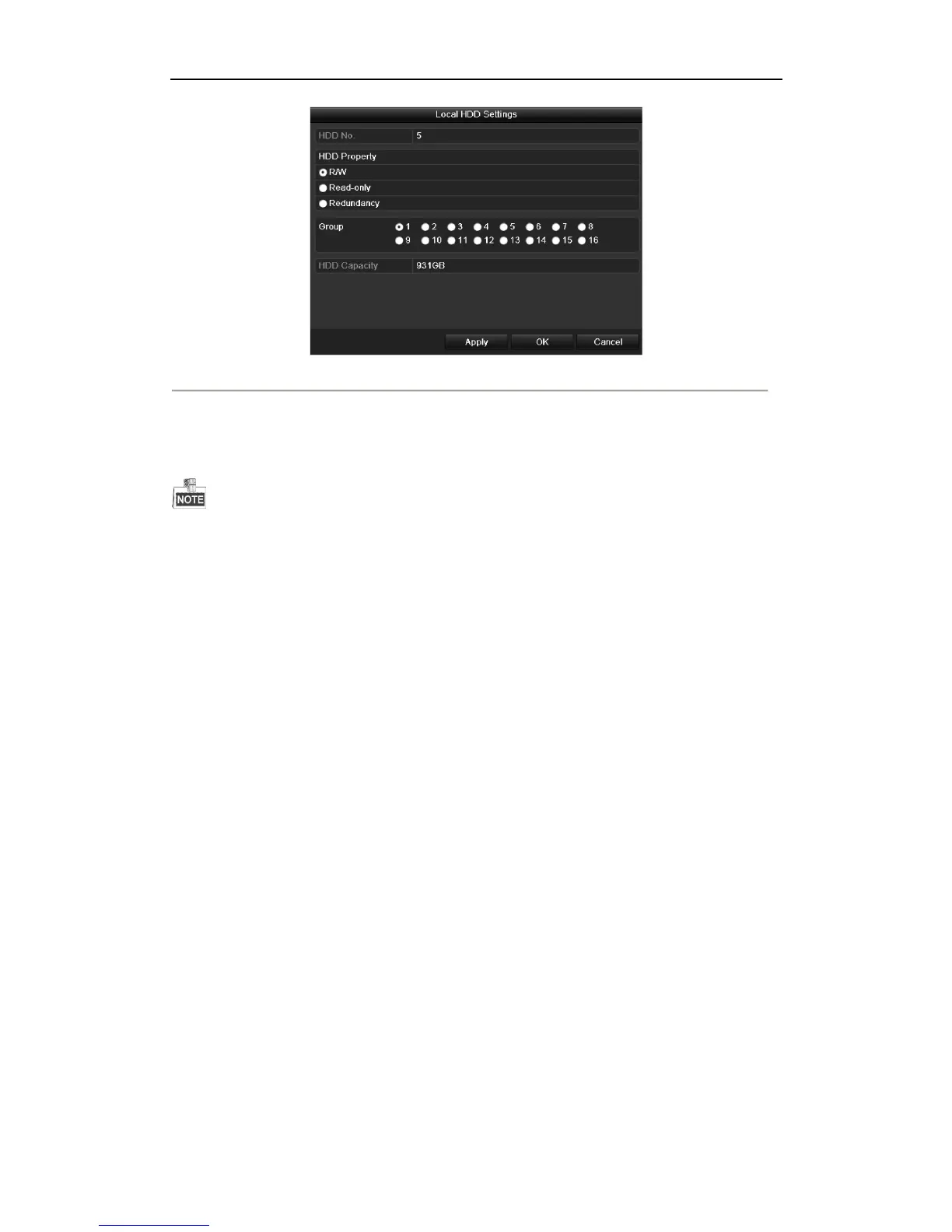At least 2 hard disks must be installed on your NVR when you want to set a HDD to Redundancy, and there is one