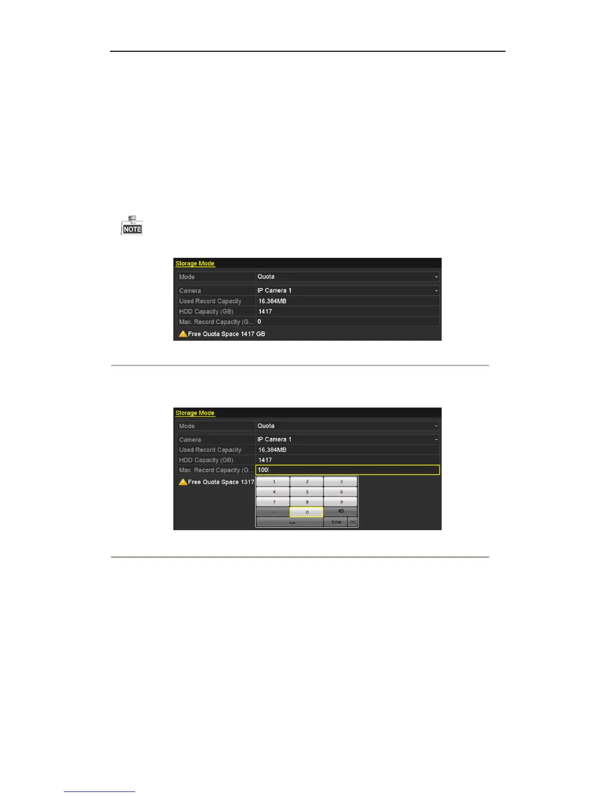 4. Enter the storage capacity in the text fields of Max. Record Capacity (GB), as shown in Figure 10. 17.