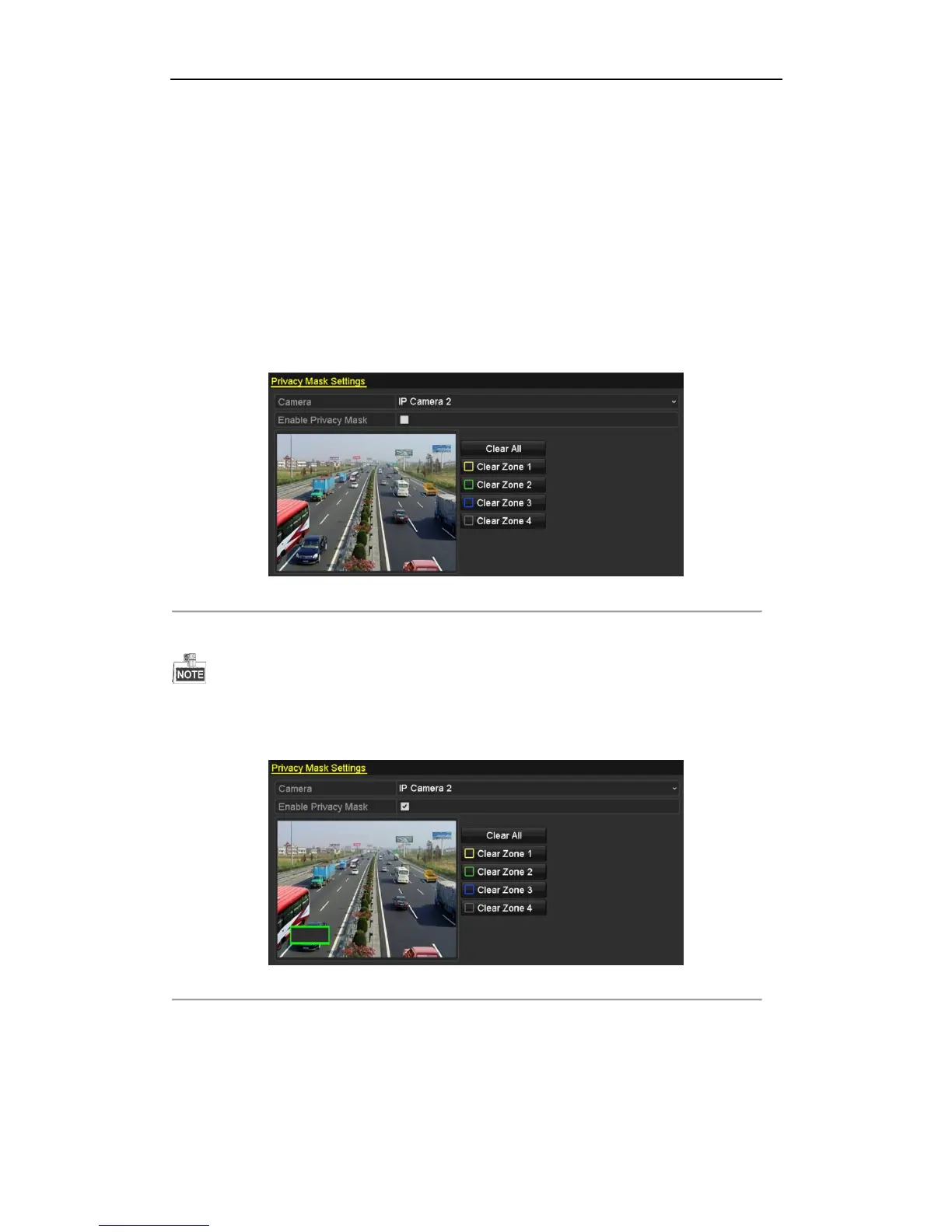5. The configured privacy mask zones on the window can be cleared by clicking the corresponding Clear