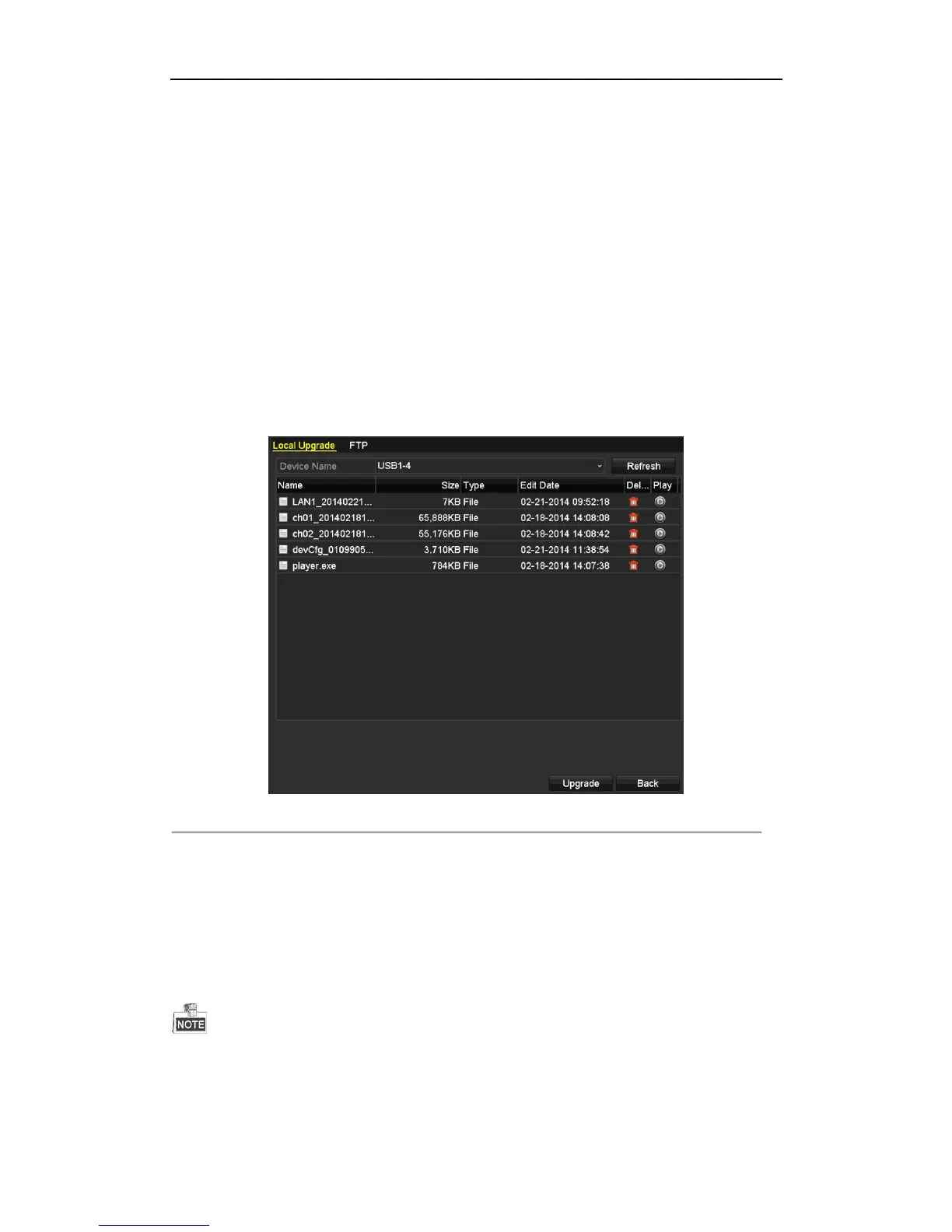 The firmware on your NVR can be upgraded by local backup device or remote FTP server.