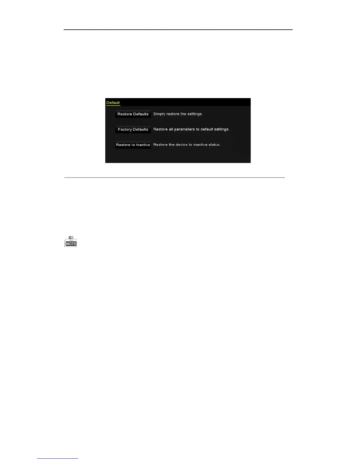 NIC working mode, default route, server port, etc.) and user account parameters, to the factory default settings.
