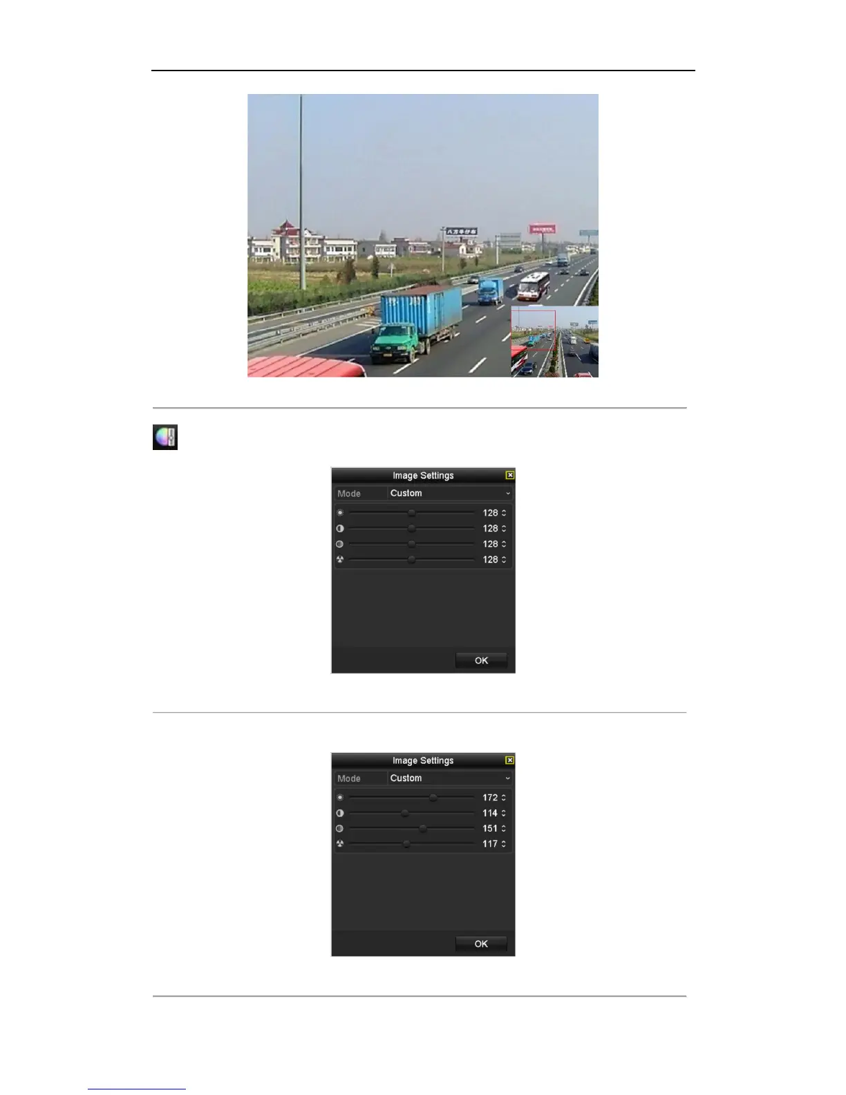You can set the image parameters like brightness, contrast, saturation and hue.