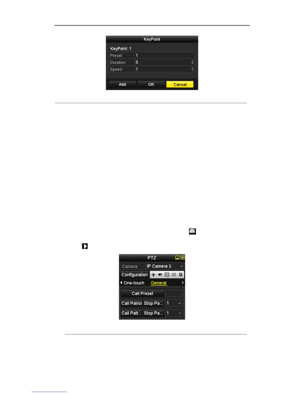corresponding key point. The Speed defines the speed at which the PTZ will move from one key point to the