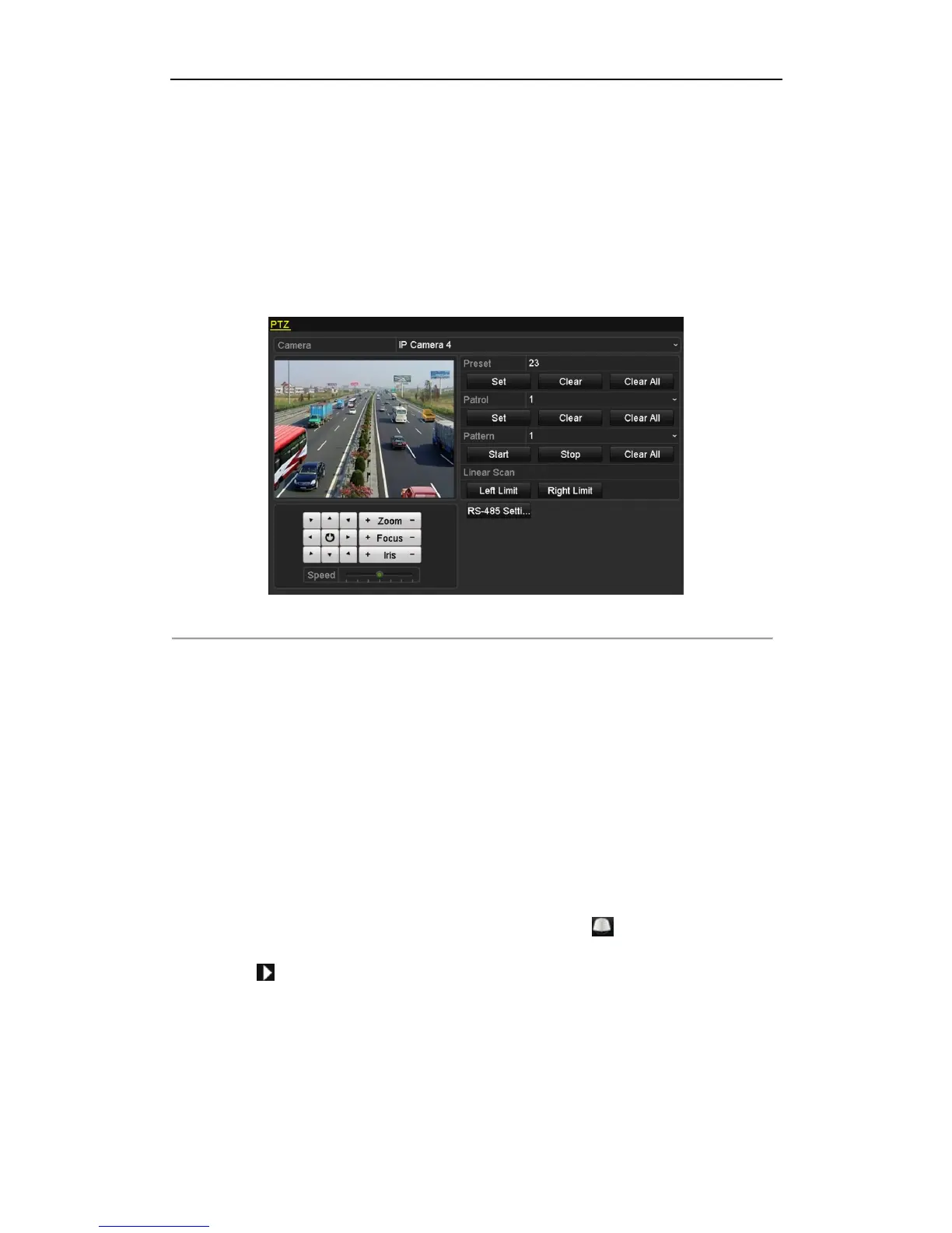 Or press the PTZ button on the front panel or click the PTZ Control icon in the quick setting bar, or