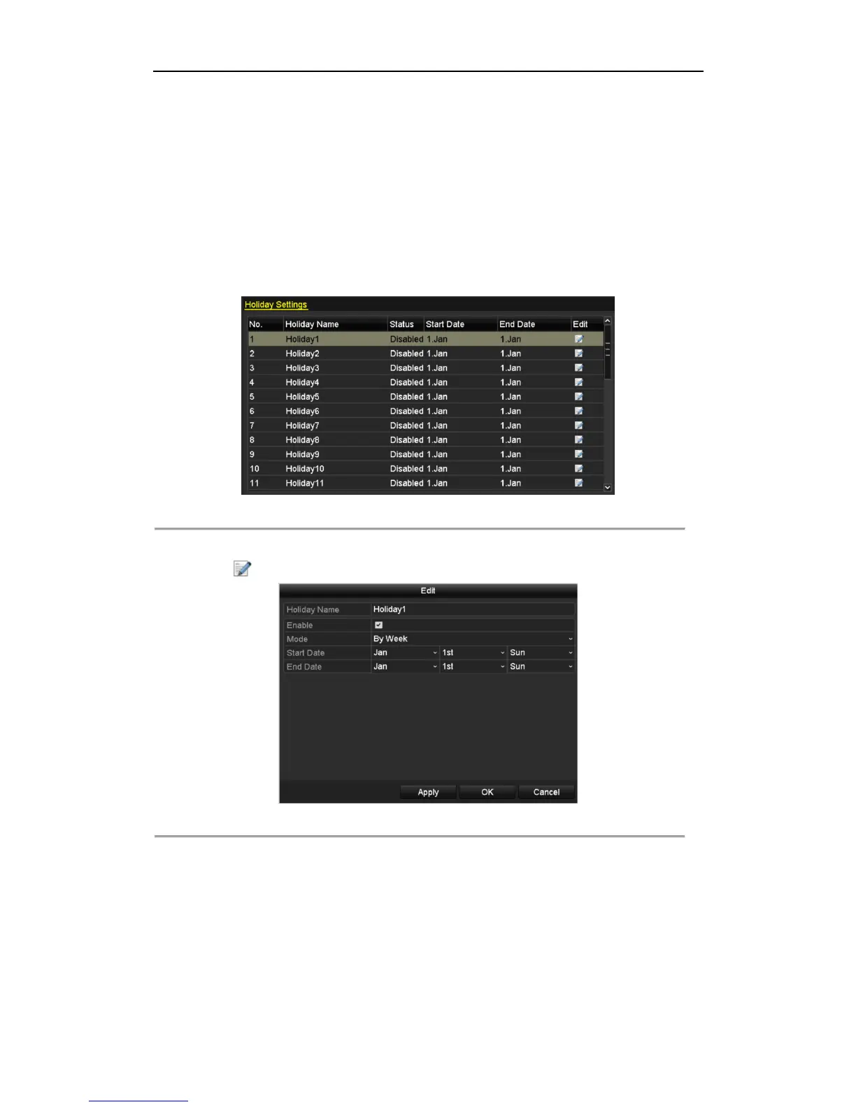 3. Enter Record Schedule settings interface to edit the holiday recording schedule. See Chapter 6.2 Configuring