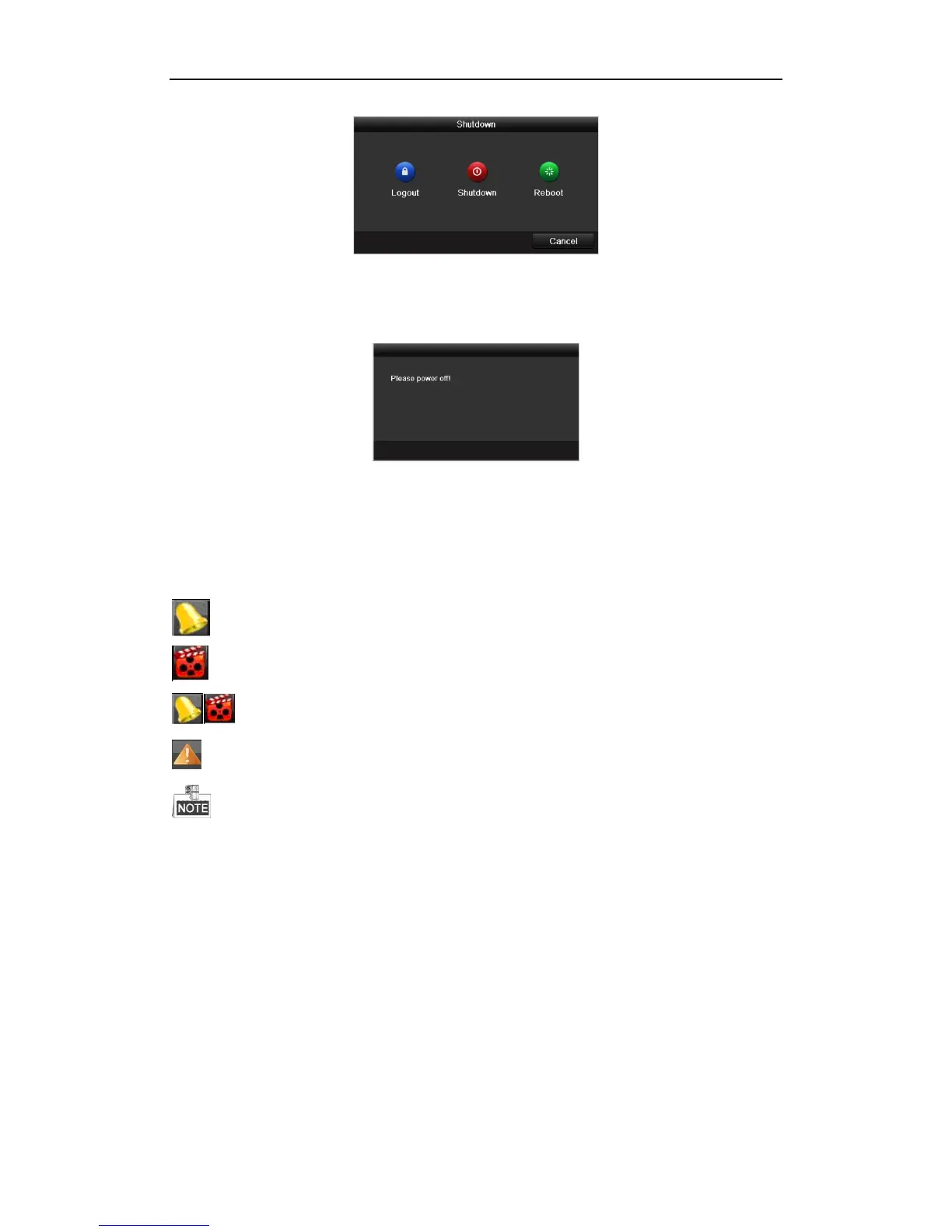 In the live view mode, there are icons at the upper-right corner of the screen for each channel, showing the status