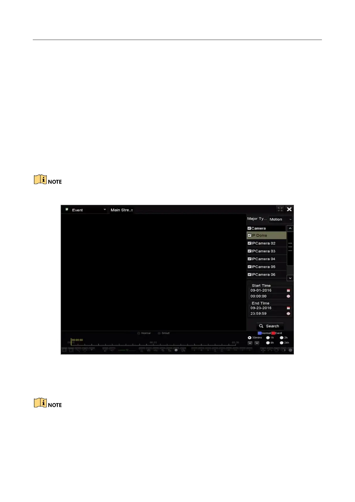 Play back record files on one or several channels searched out by event type (e.g., alarm input,