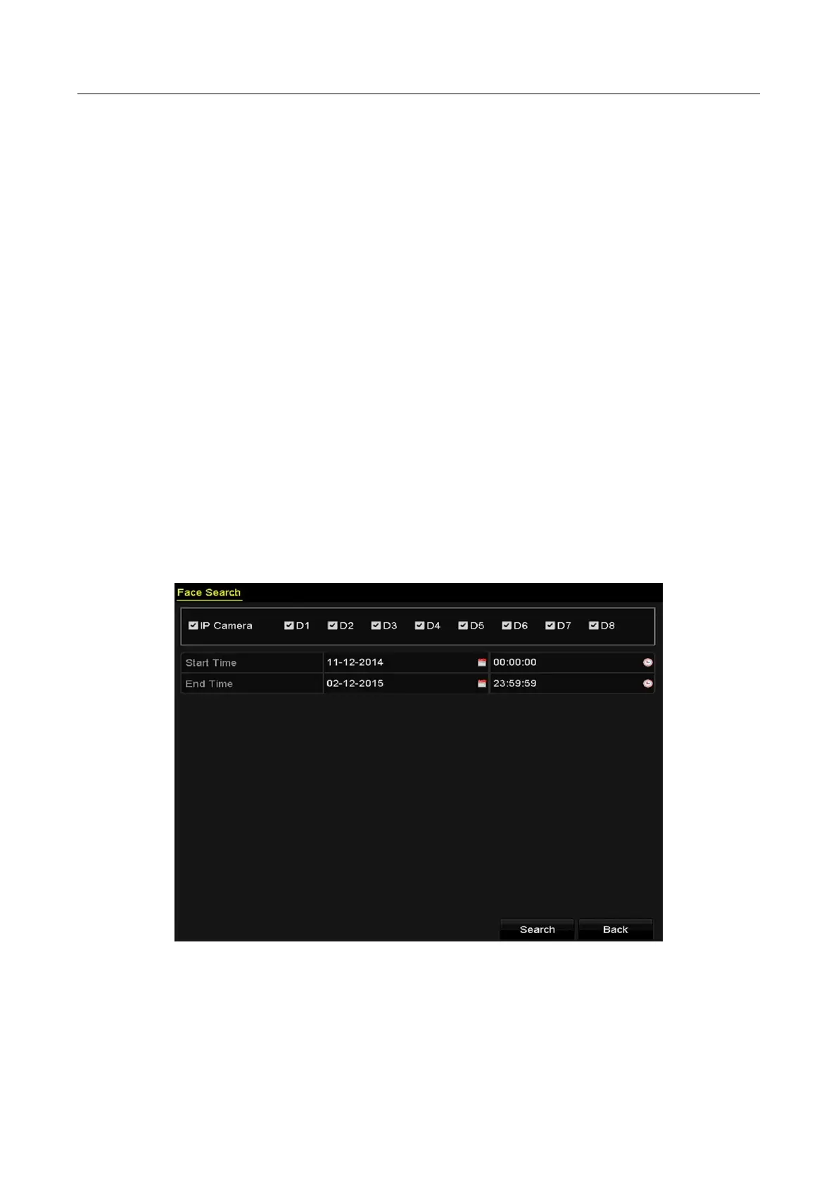 When there are detected face picture captured and saved in HDD, you can enter the Face Search