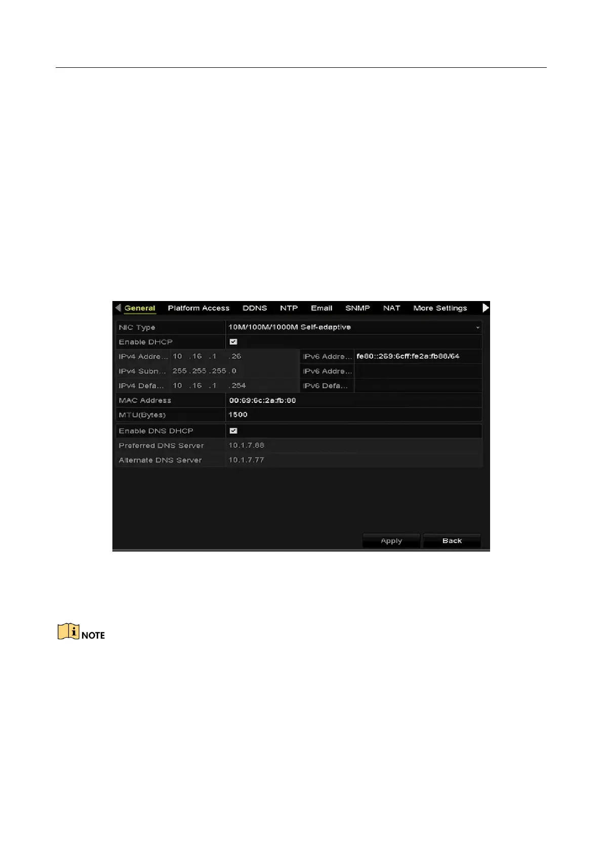 If the DHCP server is available, you can click the checkbox of DHCP to automatically obtain an
