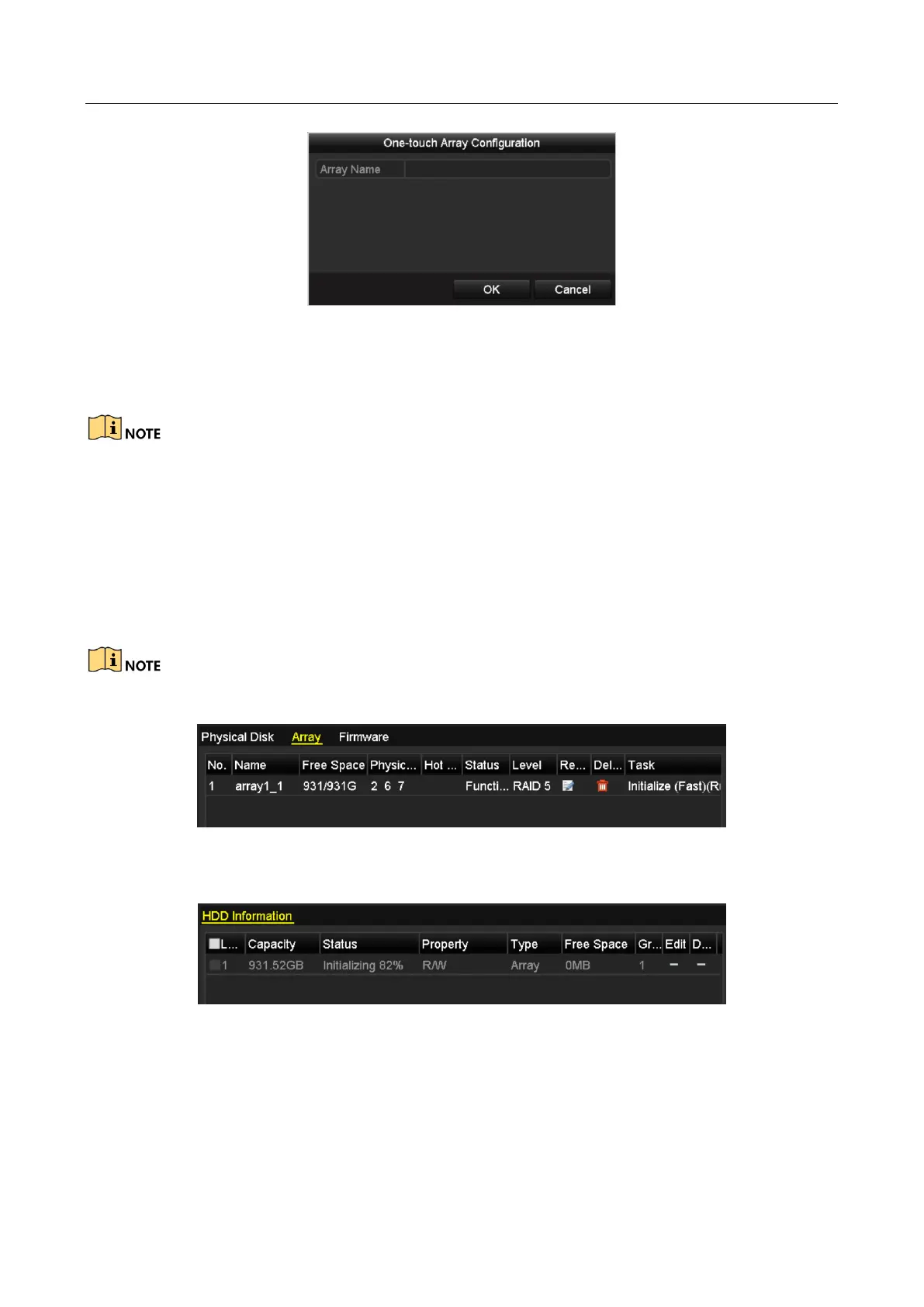 Step 4 Edit the array name in the Array Name text filed and click OK button to start configuring