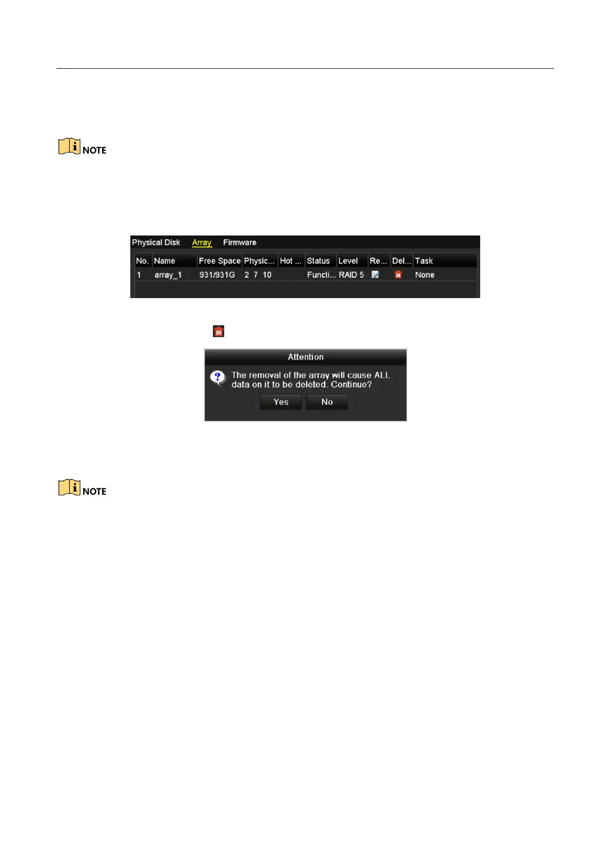 Step 3 In the pop-up message box, click Yes button to confirm the array deletion.