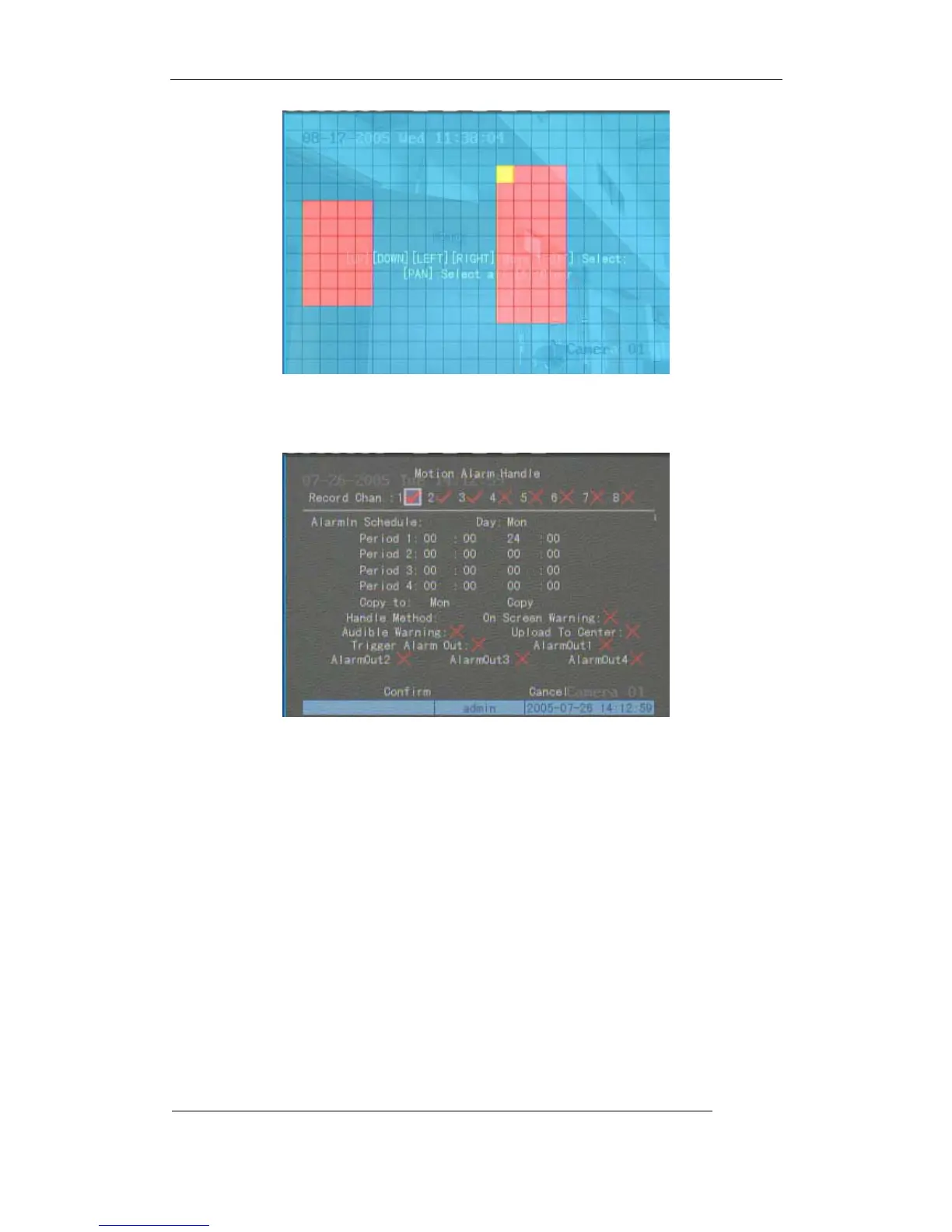 motion detection alarm, pressENTERkey to enter into “Motiomn Alarm Handle” menu: