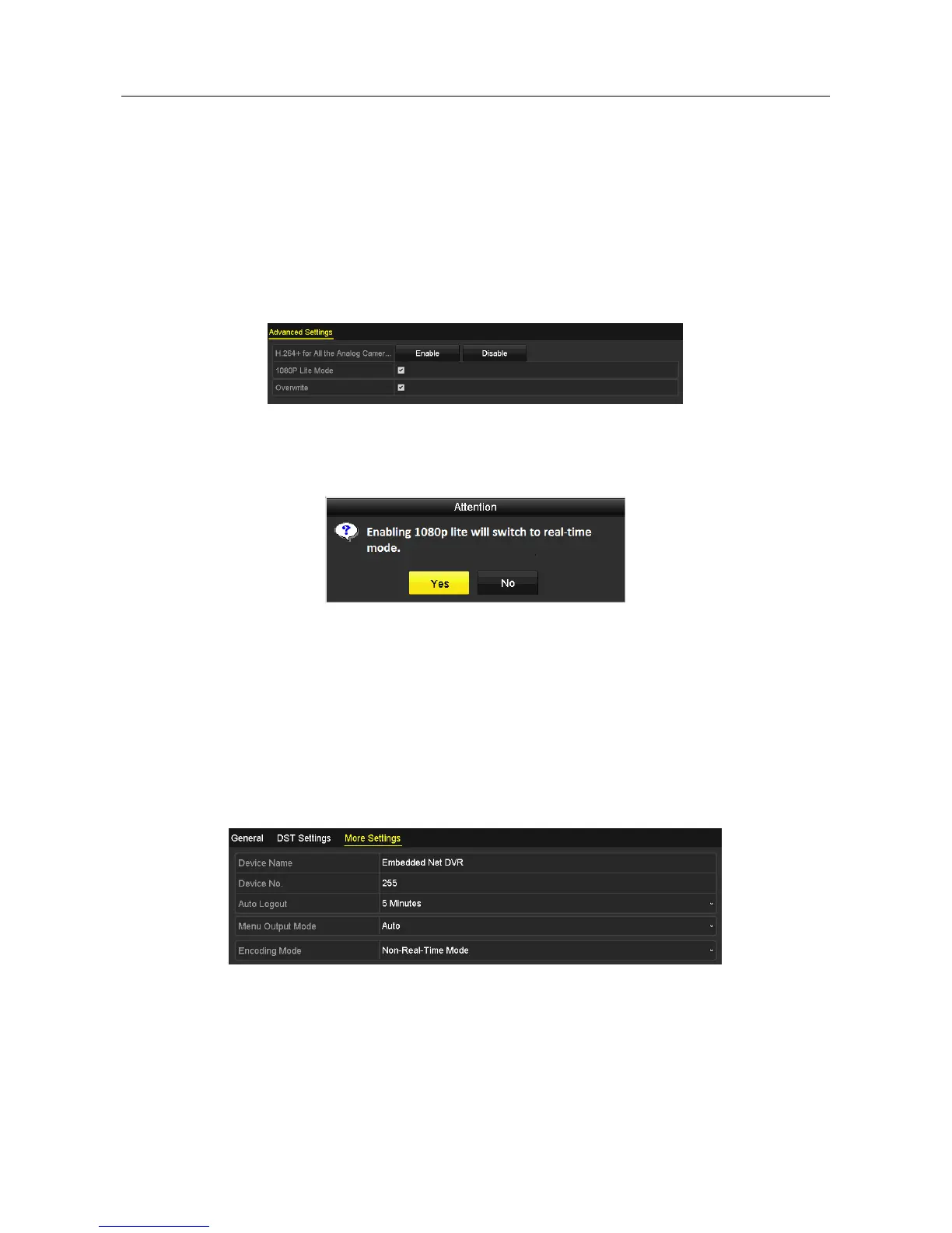 Step 4 Click Yes to reboot the device to enable 1080p lite mode and the encoding mode will