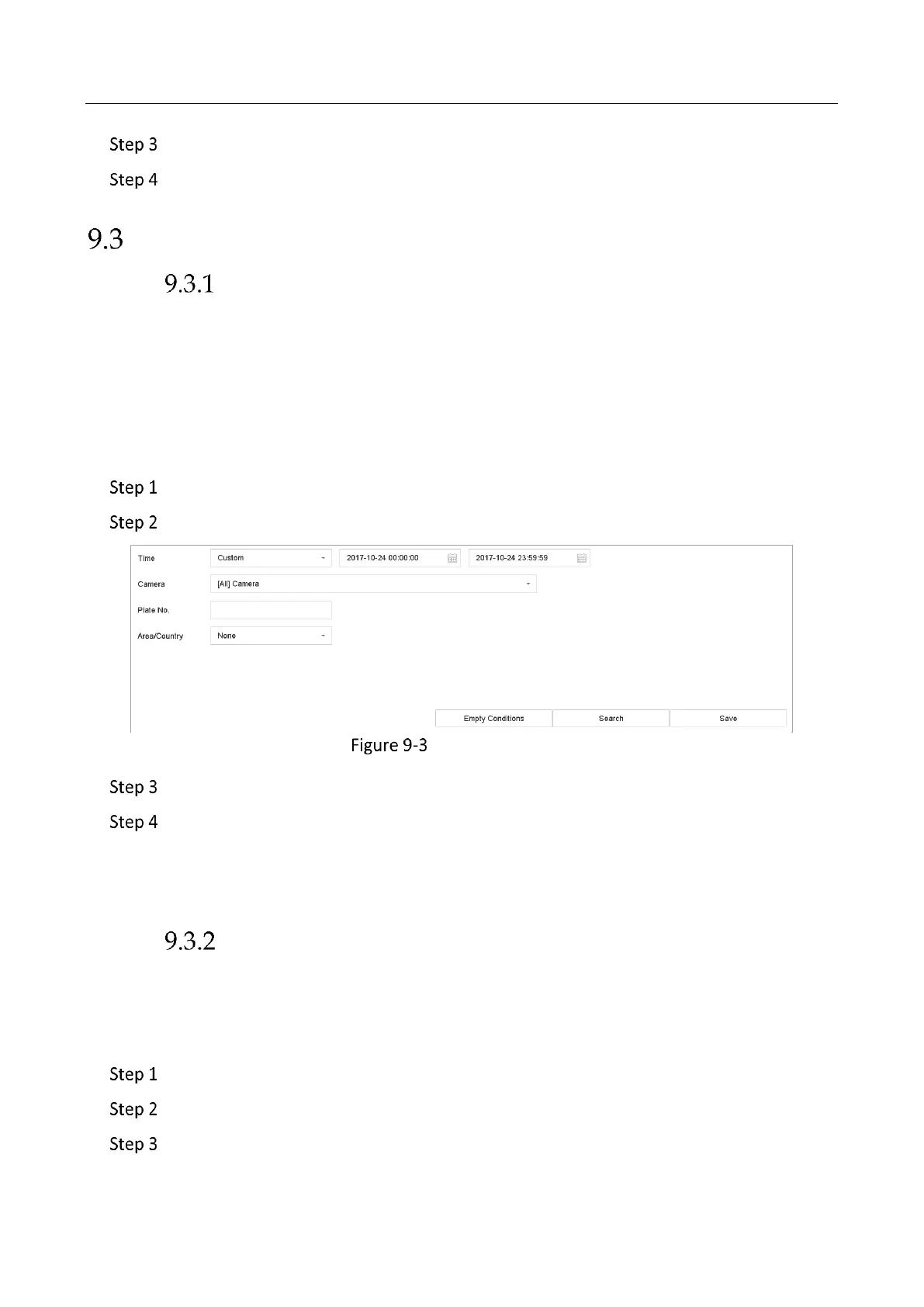 Specify detailed conditions, including Time, Camera, Plate No., and Area/Country.