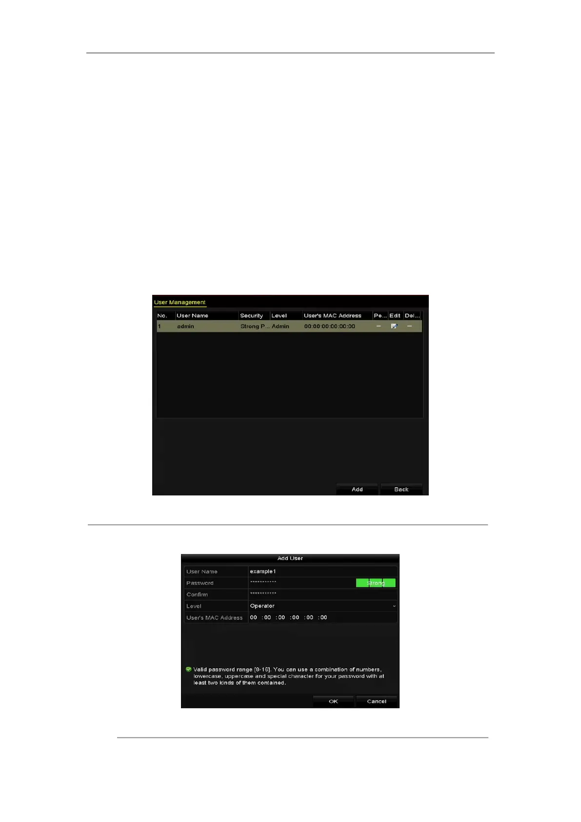set when you start the device for the first time. The Administrator has the permission to add and delete user and