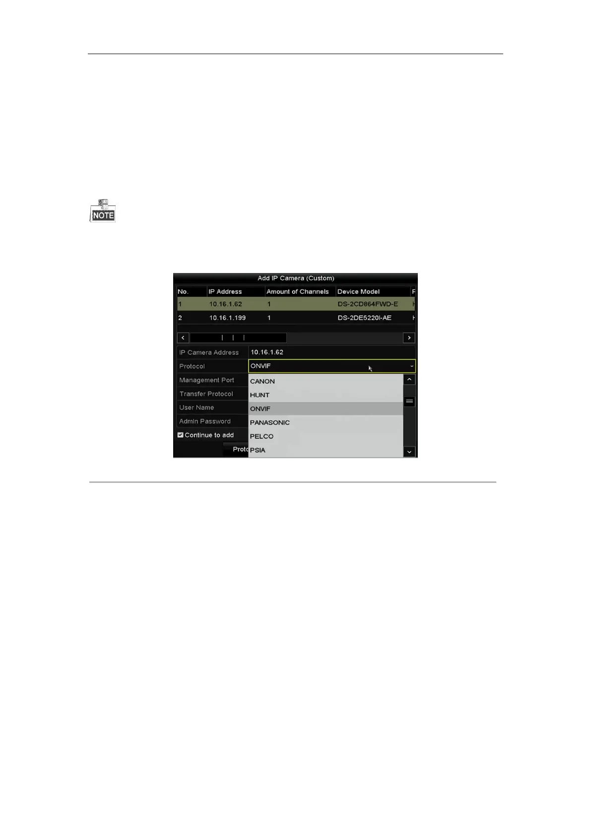 The protocol type and the transfer protocols must be supported by the connected network camera.