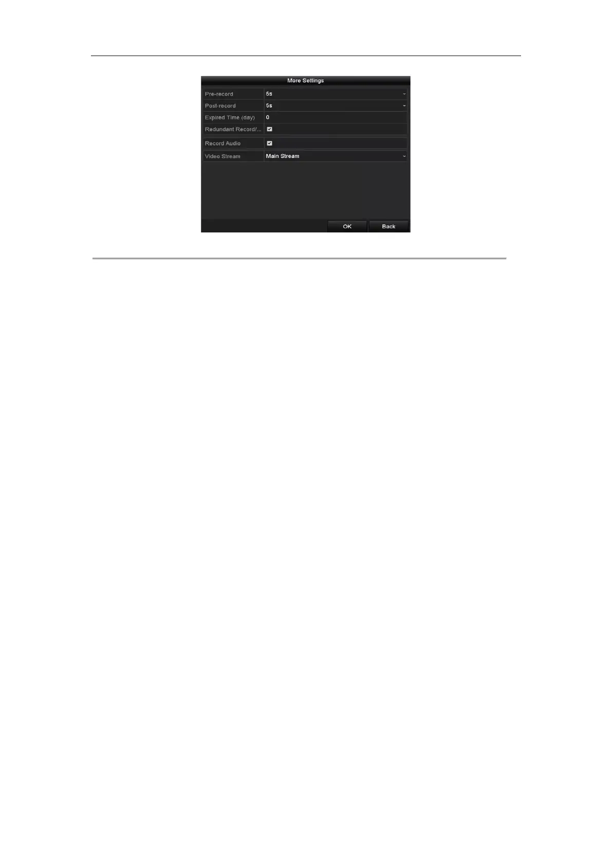 5) Click OK to save settings and back to the upper level menu.
