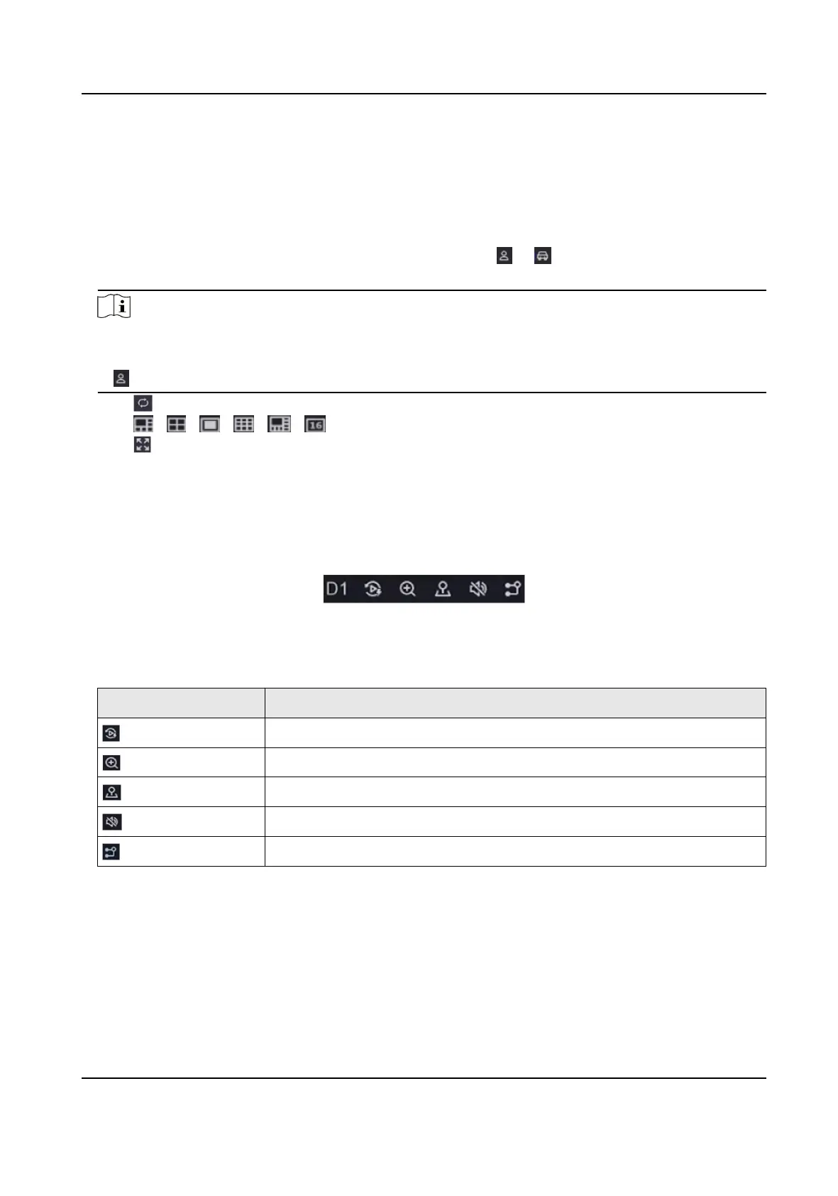 In the live view interface, there are icons at the upper-right corner of the screen for each