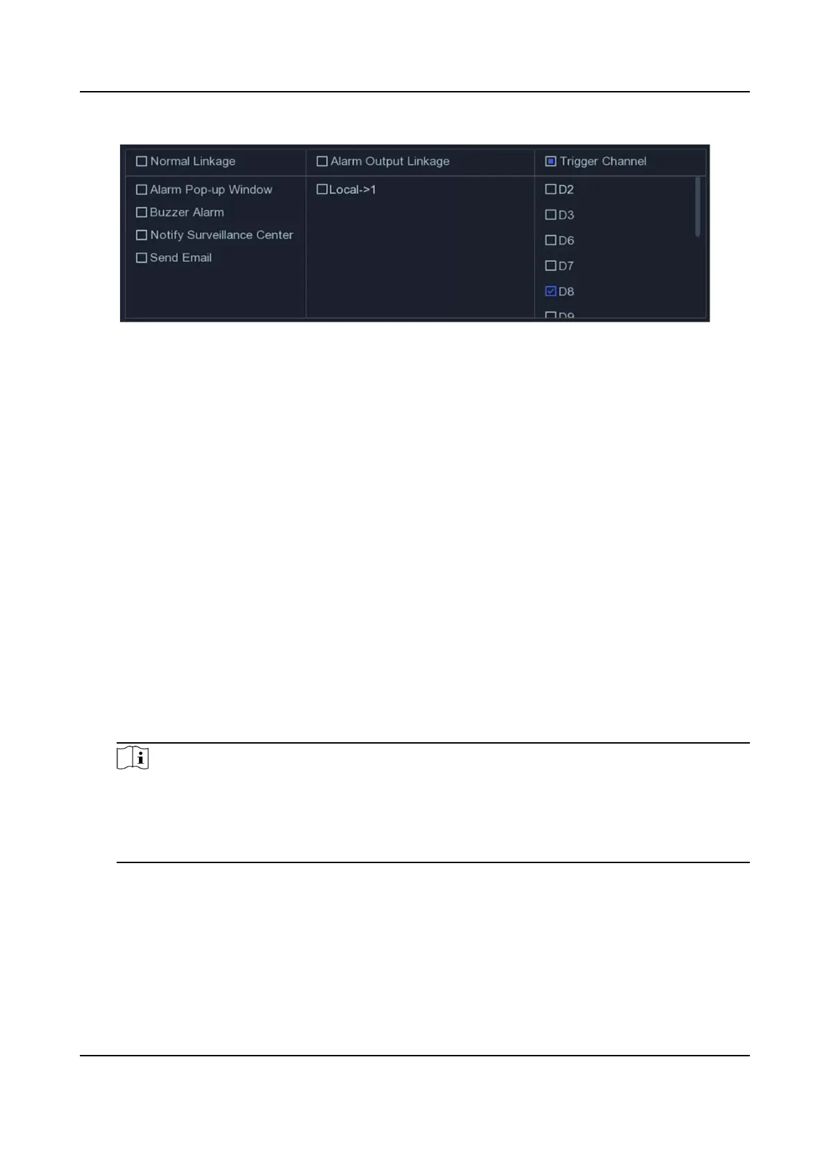 requires to select the alarming channel(s) in Trigger Channel.