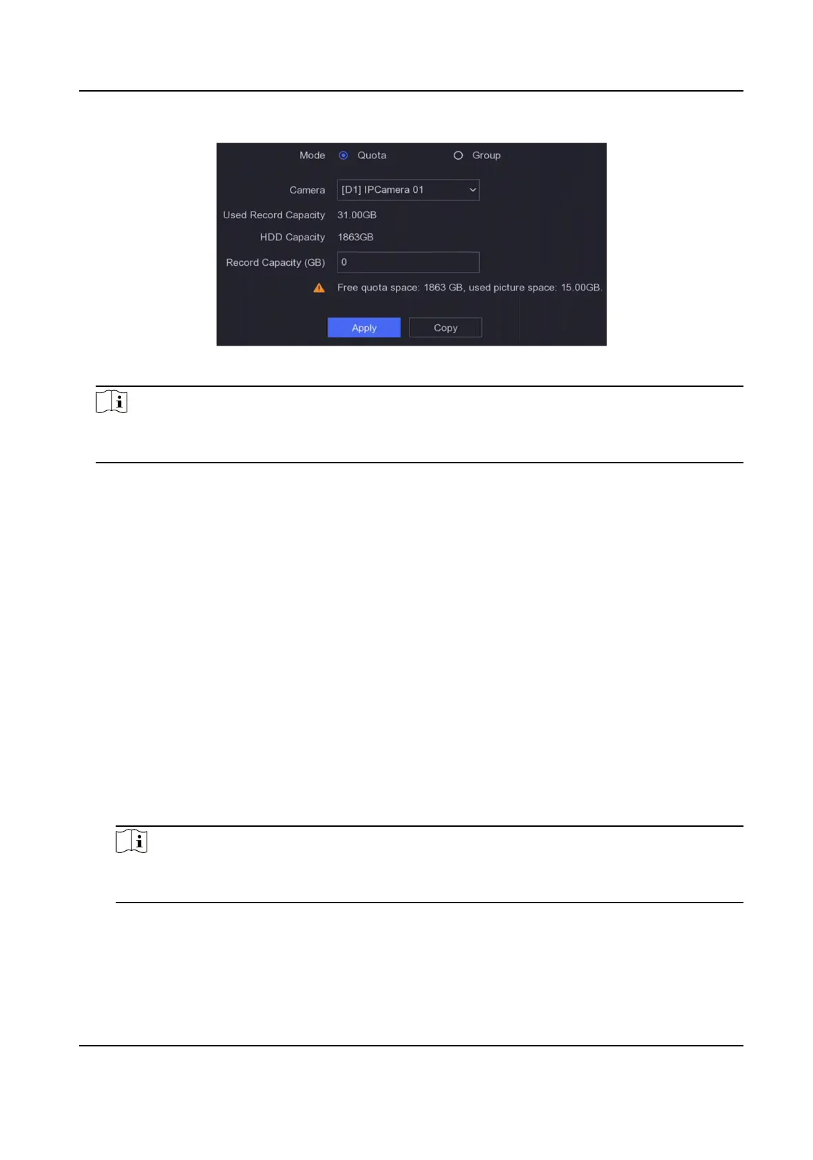 When the quota capacity is set to 0, all cameras will use the total capacity of HDD for videos and