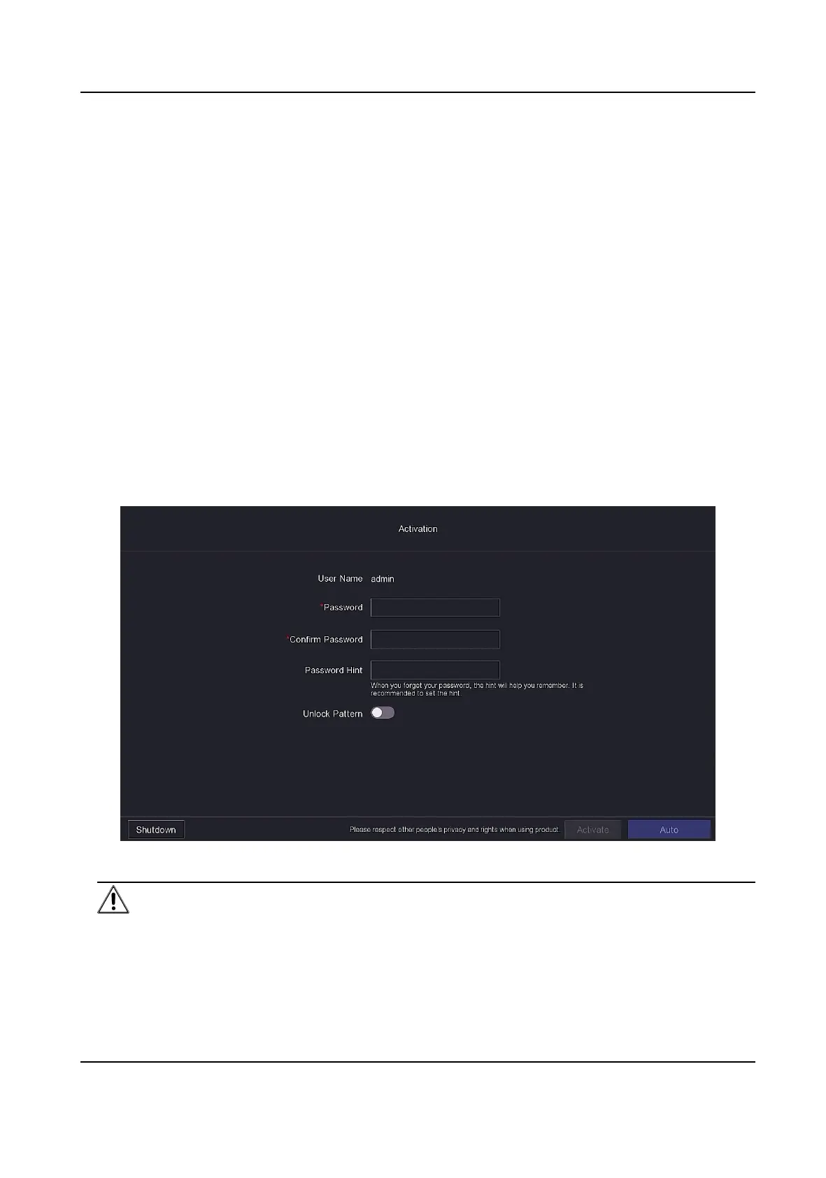 For the rst-me access, you need to acvate the video recorder by seng an admin password. No