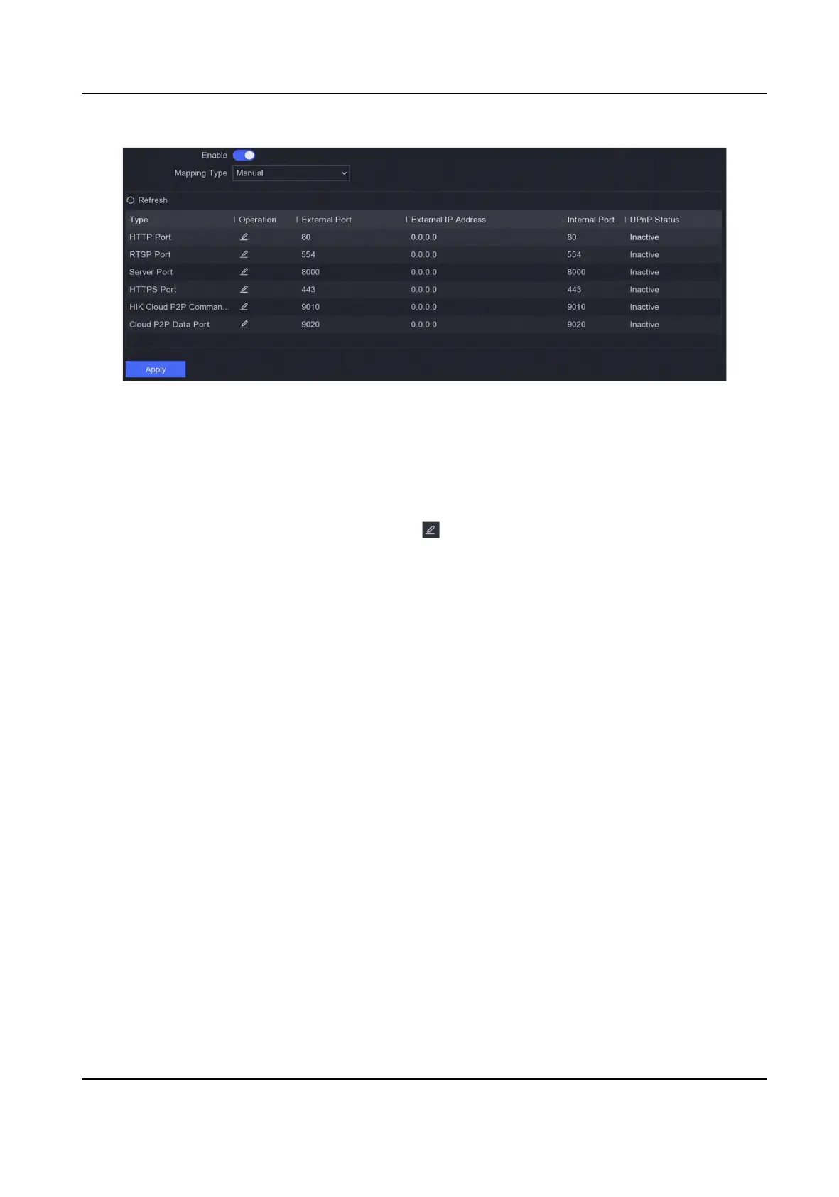 Manual Select an external port type. Click to edit External Port. You can use the default