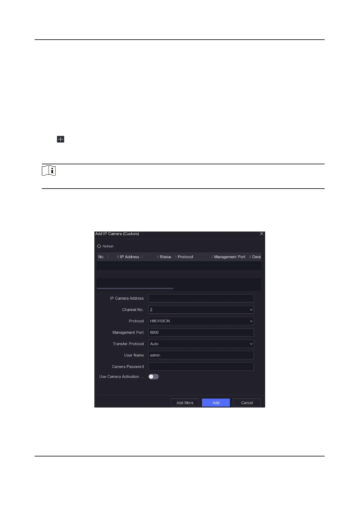 Oponal: Enable Use Camera Acvaon Password to use the device password to add network