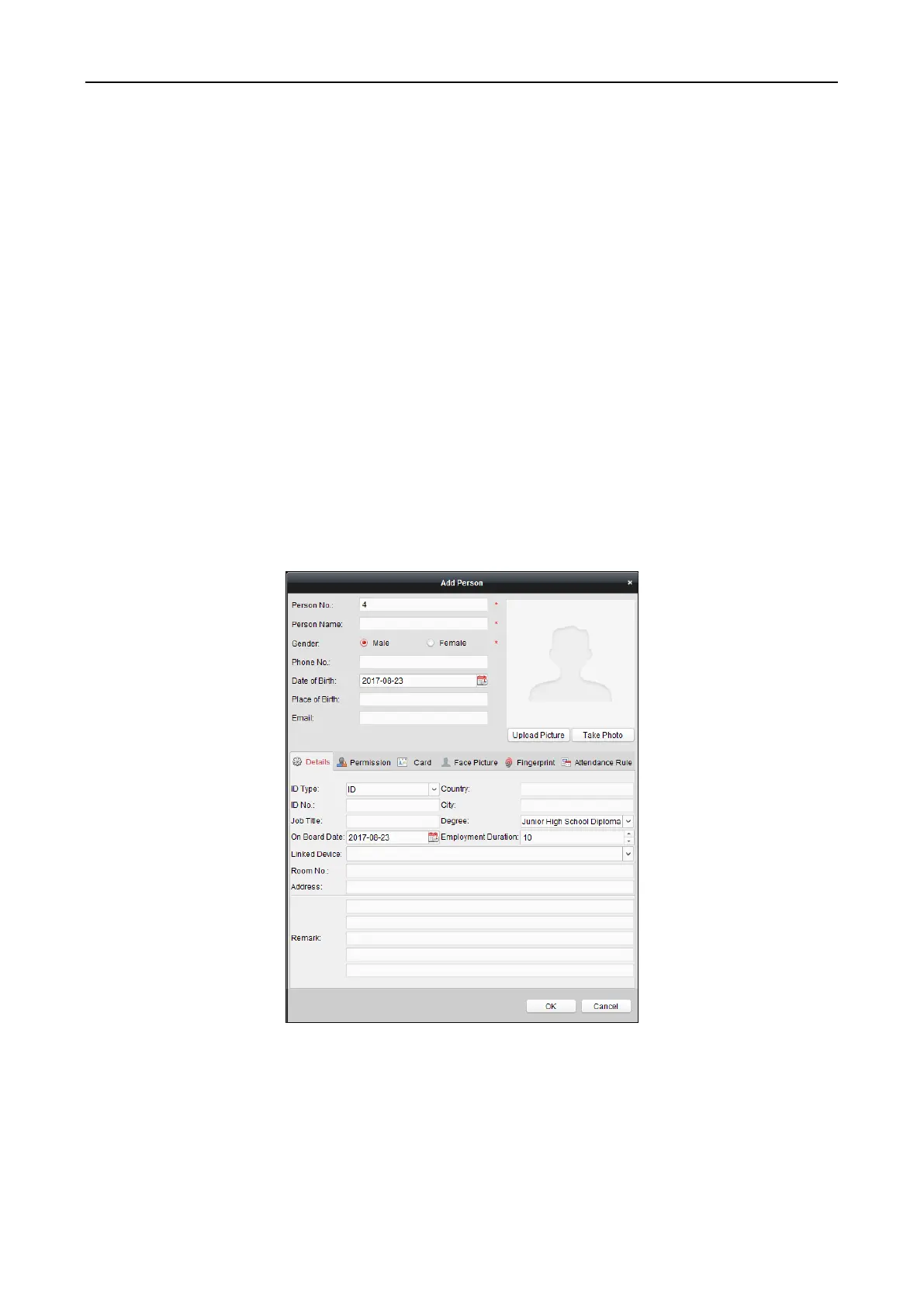 4. Click Upload Picture to select the person picture from the local PC to upload it to the client.