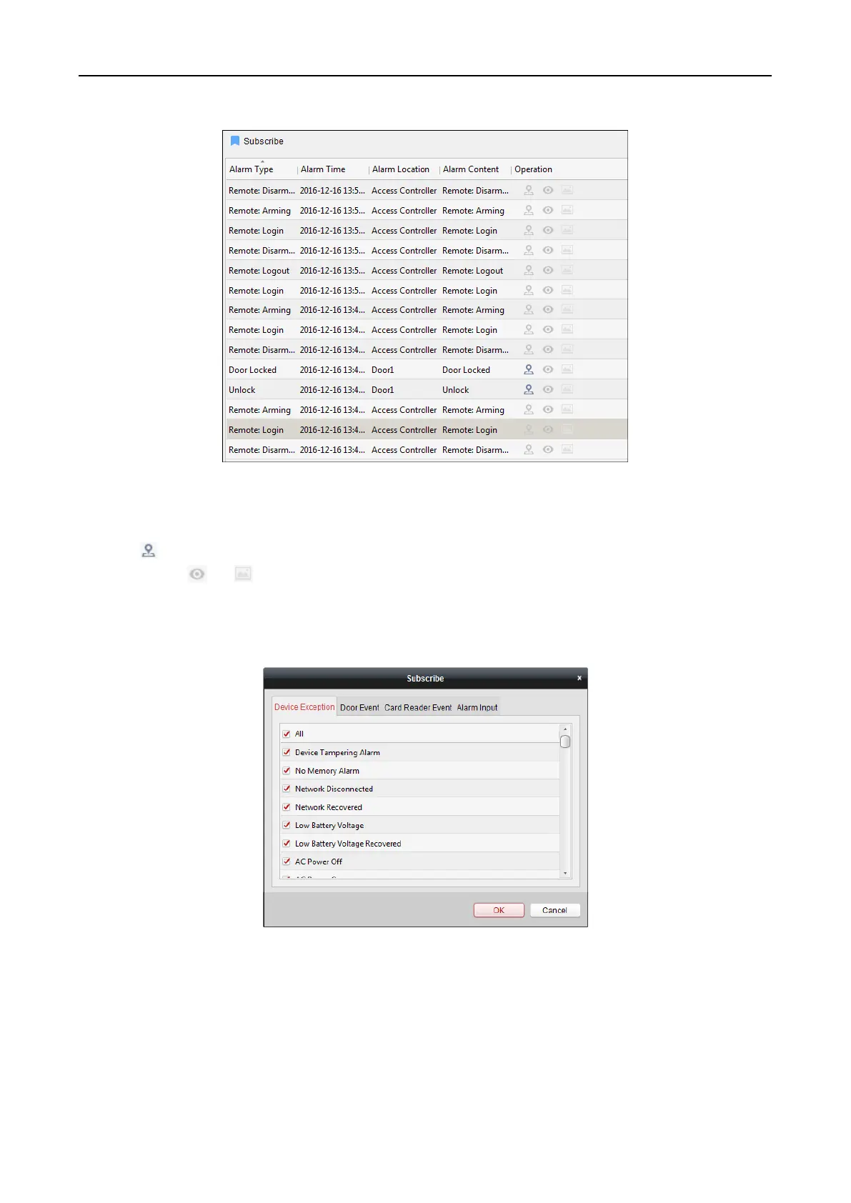 4. Click Subscribe to select the alarm that the client can receive when the alarm is triggered.