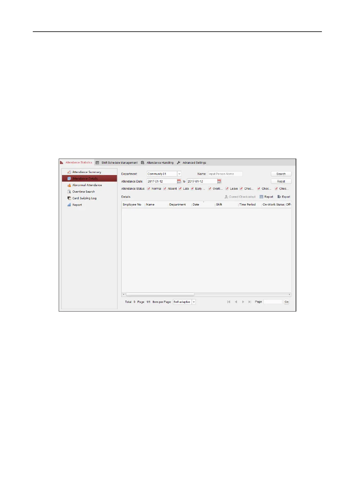 1. In the Attendance Statistics page, click Attendance Details item on the left panel to enter the
