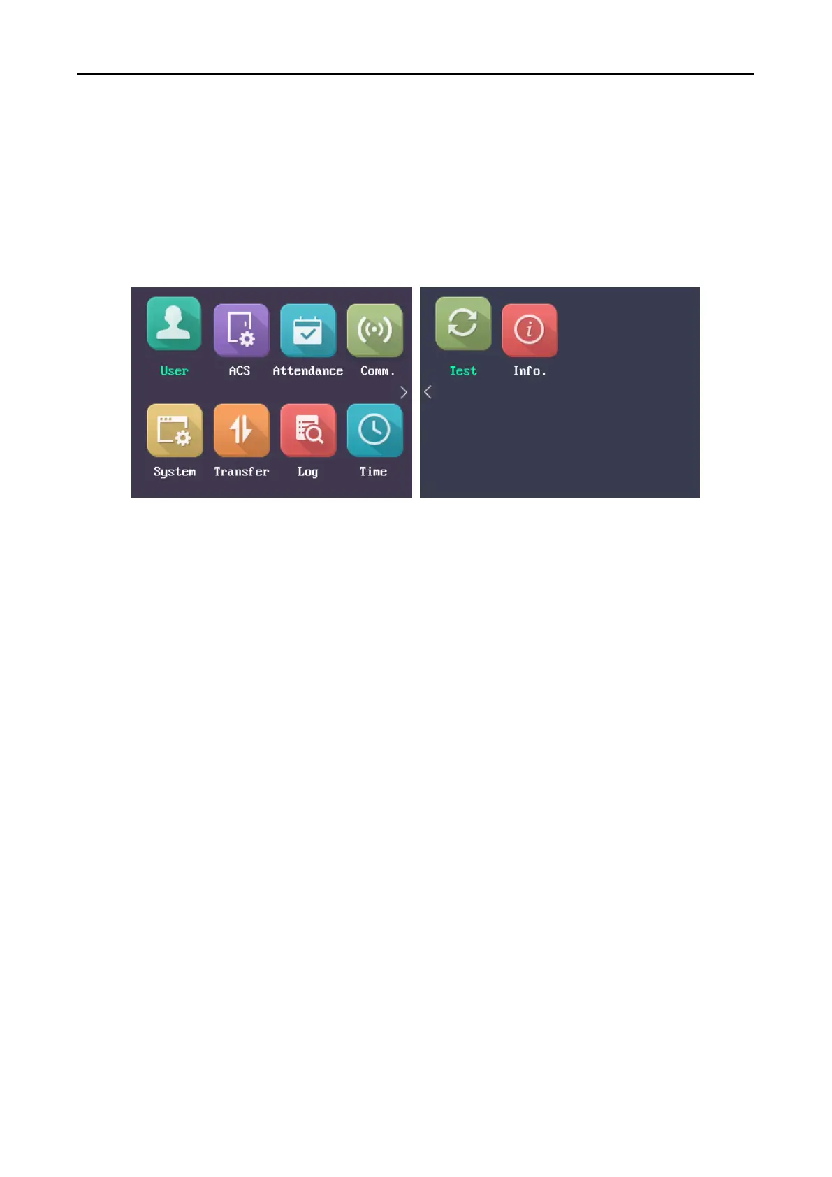 4) Scan the fingerprint, input the employee ID and the password, or input the device