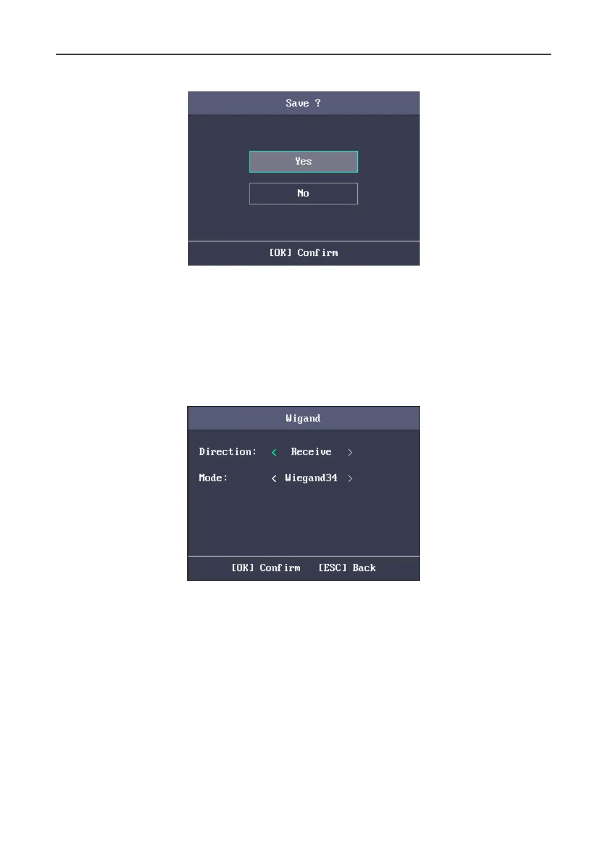 1. Move the cursor to Wiegand, and press the OK key to enter the Wieagand interface.